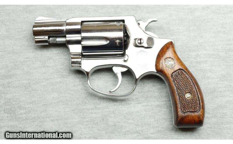 Description: Excellent condition, light wear, small scratches, comes with original box. S&W .38 Special "snub nose" revolver, 2" barrel, stainless finish, 5 shot fluted cylinder, double and single action trigger, fixed sights, checkered hammer & cylinder latch and S&W factory wood grips. .38 Special SOLD Chambers: Revolver Metal Condition: Excellent Bore Condition: Bright Barrels: 2 Triggers: Double and single action Butt Pad: Wood grips Sights: "Fixed rear channel, ramp front sights Item Location: La Vista, NE |