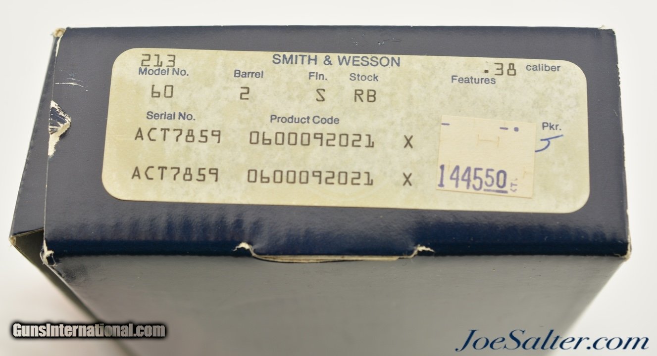 Smith & Wesson Model 60 Stainless Chiefs Special 38 SPL Revolver LNIB