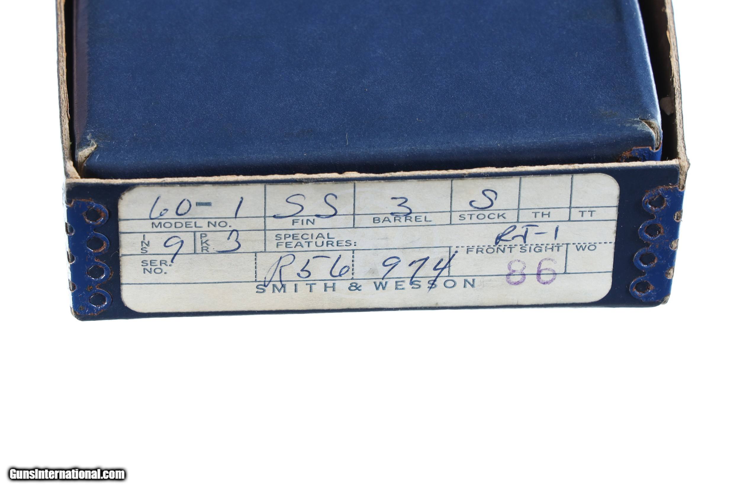 Description: Excellent overall condition with factory box numbered to gun. Heavy barrel. Limited Production of 171. Mfg in 1972. • Free Shipping, No Credit Card Fees. • Lay-a-way available for this firearm. • 1/3 Down, a 1/3 in 30 Days 1/3 in 60 Days. SOLD Manufacturer: Smith & Wesson Model: 60-1 Chief Special Serial Number: R56974 Barrel Length: 3 |