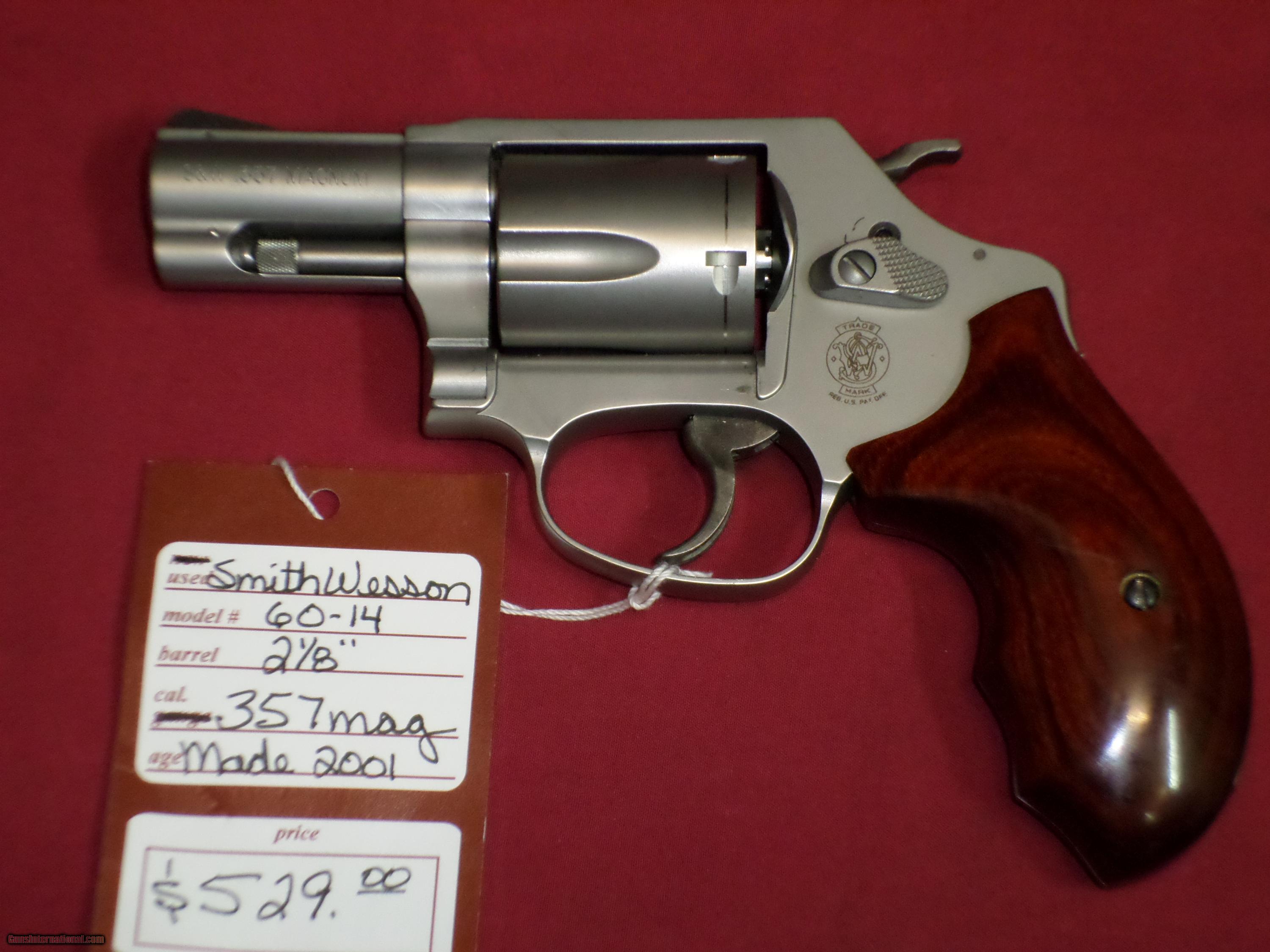 Description: SOLD For sale, Smith & Wesson 60-14 Lady Smith, 2 1/8" bbl, .357 Mag. With lock. Shows a cylinder ring, but looks unfired. Circa 2001 To see more of our inventory, visit deerhunterguns,com We collect 7% sales tax for Florida sales. We accept MC, Visa and Discover, no AmEx. No Sales to California. Like us on Facebook: Deer Hunter Guns SOLD |