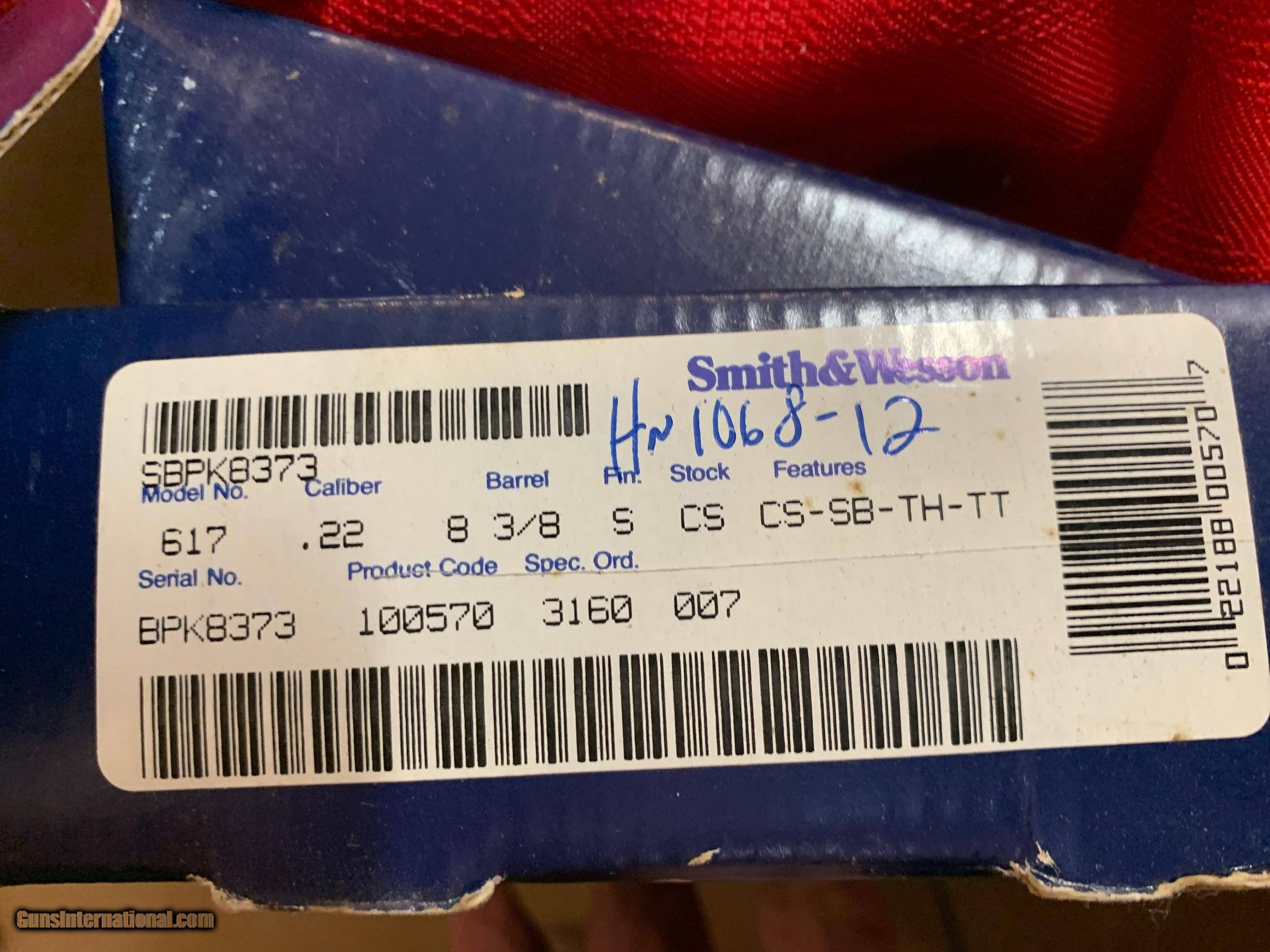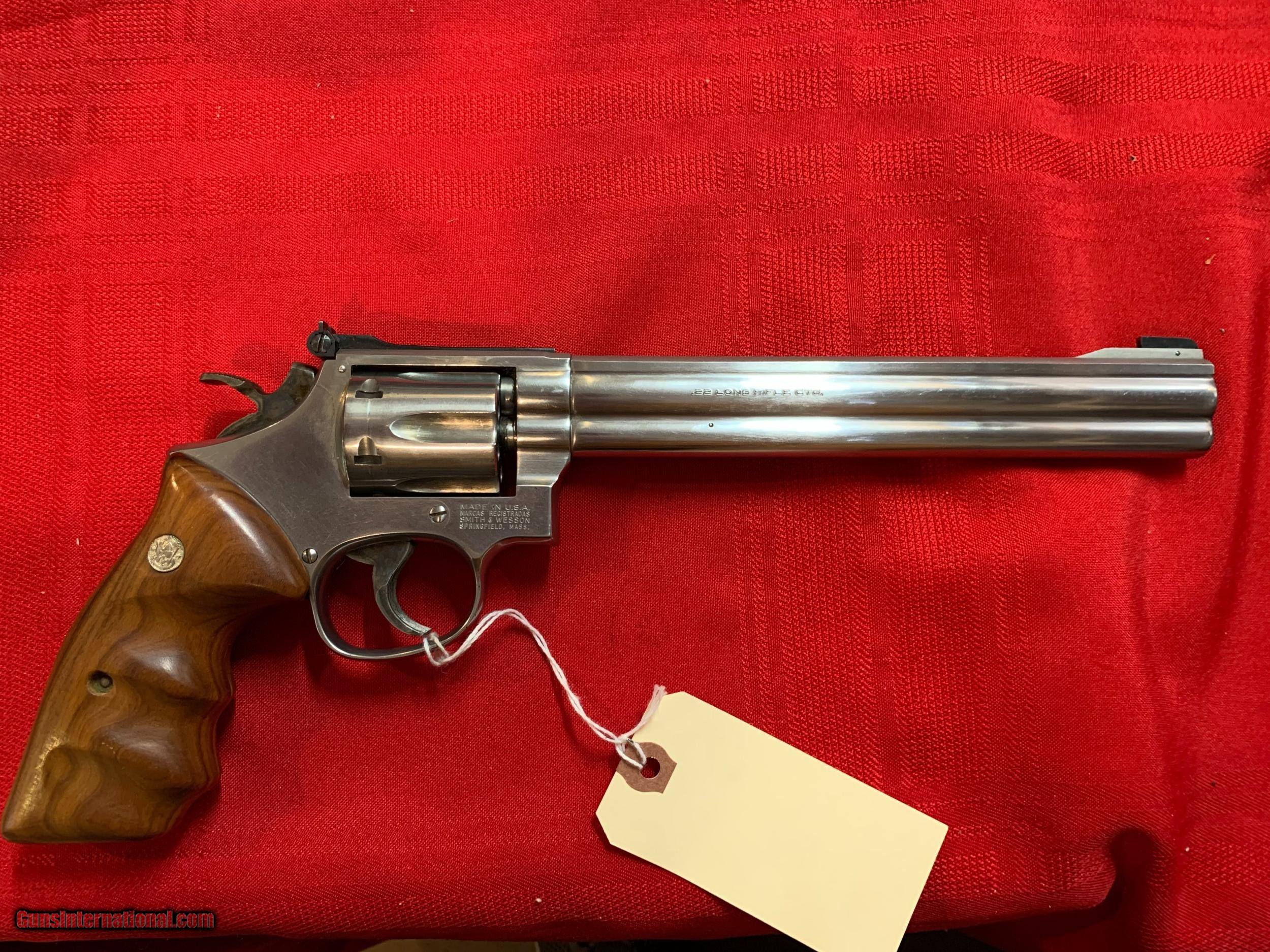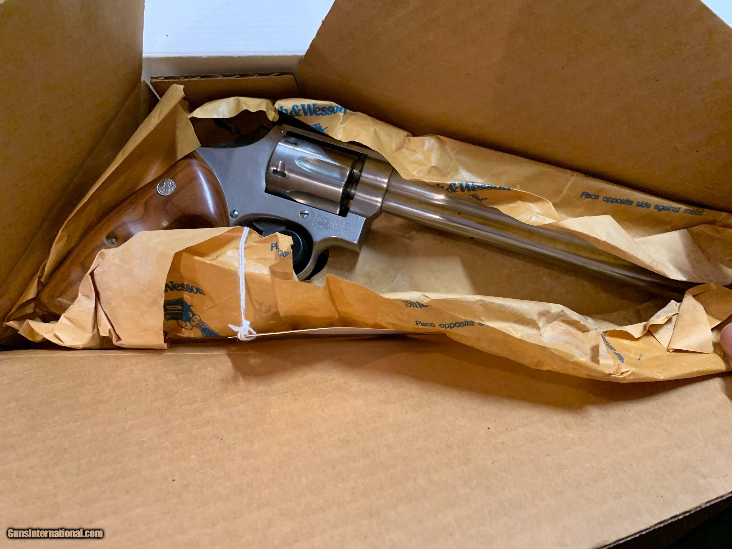 Description: Stainless steel 22 LR revolver. 8 3/8". 6 shot. Target hammer, trigger, sights. Finger groove target grips. Box is correct for gun BUT not correct serial number. Box has all paper work. SOLD Handgun Caliber: .22 Long Rifle |