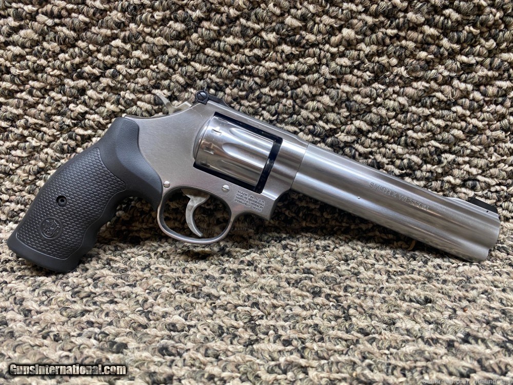 Description: Guns Listing ID: 1285455 This listing is for a USED Smith & Wesson 617-6 22 LR SS Finish Black Rubber Grips 6\" BBL 10 Shot. This is a used gun, it has been fired and will have residue present. This S&W 617-6 is chambered in 22 LR, and it will hold 10 rounds in the cylinder. This revolver comes with a 6 inch barrel. It comes equipped with a fixed front sight, and an adjustable rear sight. There are a few light scratches on the barrel and frame. The action appears to be in good condition, the finish appears to be in good condition, and the bore appears to be in good condition. This revolver comes with a cable lock and the hard case. This would be a great plinking revolver. ** DISCLAIMER** THIS FIREARM HAS NOT BEEN TEST FIRED*** SOLD Manufacturer: SMITH & WESSON Model: 617 Caliber Info: .22 LR Condition: Used - Non-Certified Barrels: 6 BARREL Finish: STAINLESS |