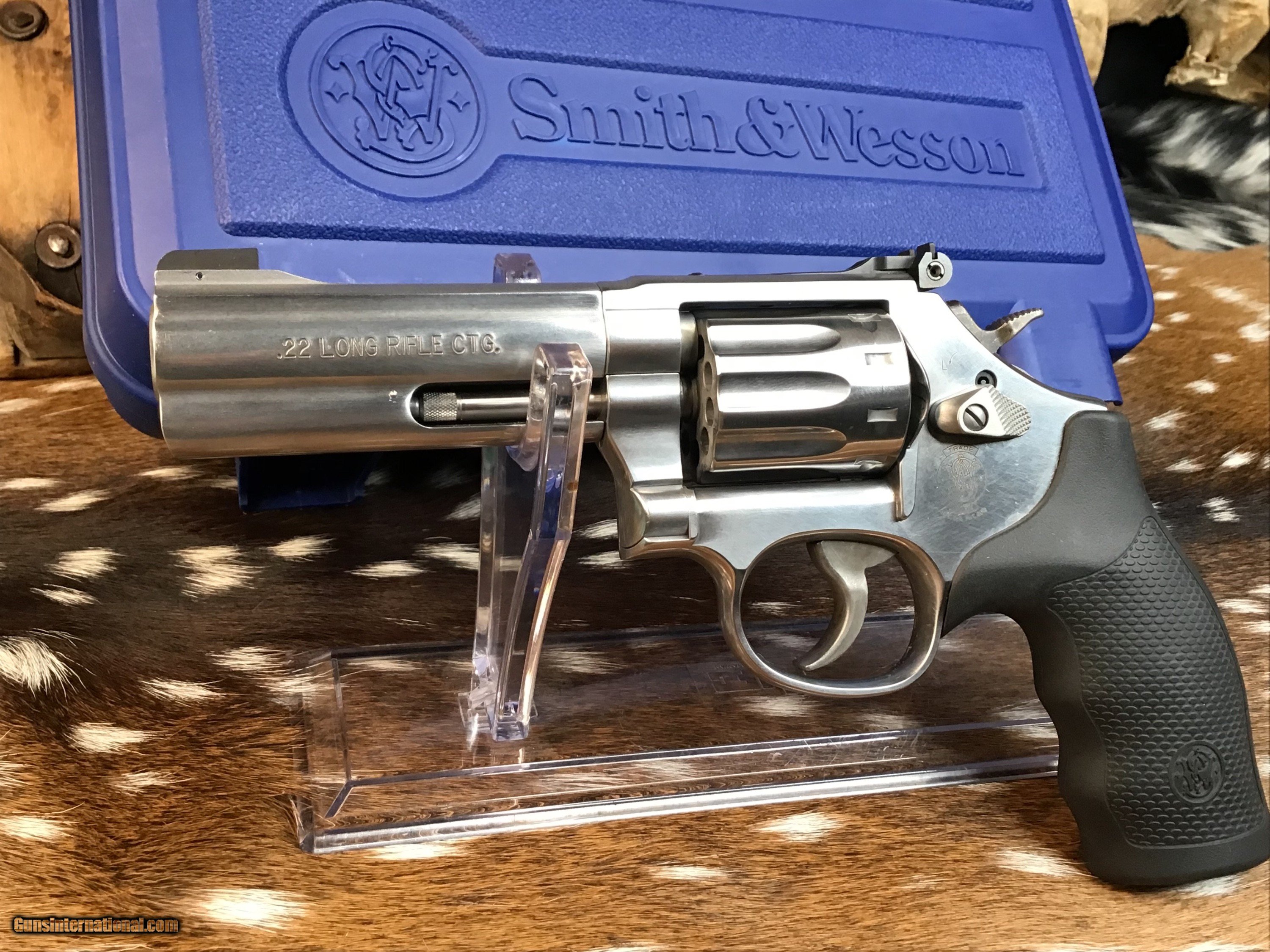 Description: Smith & Wesson model 617-6 22LR, 4 1/8" bbl, SN CYT9045. 100% satin stainless finish, good bore, adjustable rear sight, 80% case color on serrated hammer and smooth trigger, checkered rubber finger groove combat style grips show no handling with papers and factory plastic case. Excellent condition. An excellent pack or camp gun to enjoy plinking with friends and family. Add 3% if paying with credit card. Free shipping offered to all U.S. Veterans. God Bless America from a proud American, and a Viet Nam Vet , thankful for our freedoms.. paid for by the Blood ,Sweat and Tears of our brave men and women in uniform. Ten Below Firearms is a Veteran owned and operated business. We specialize in out of production models of high quality firearms. We love to ship! We ship to all states where legal, just give us a call! Handguns normally ship for $35 and Long guns for $50 and up for extra length long guns. That's 2-3 day USPS Priority shipping, Delivery conformation and with tracking number. Optional Postal insurance is additional $1.85 per $100 and highly recommended. We are OPEN BY APPOINTMENT ONLY FOR IN PERSON VISITS, We trade, sometimes. All payments sent via USPS Priority mail must be received within FIVE DAYS of date of purchase or item will be relisted for sale. **PROPS MAY BE USED FOR PHOTOS, PROPS ARE NOT INCLUDED WITH THE SALE OF THIS FIREARM** Thank you! Layaway:If needed we offer a 60 day layaway program. We offer FREE 60-day layaway. Buyer must pay at least 1/3 down, 1/3 Due in thirty days and the final balance due in sixty days. On all uncompleted layaways, all payments made will be non-refundable. The 60 days begins the day the buyer commits to buying the gun. 90 day layaway is available with 1/2 down, via phone. All layaway sales are final. Layaway is not available on negotiated prices. SOLD Handgun Caliber: .22 Long Rifle Manufacturer: Smith & Wesson Model: 617-6 Serial Number: CYT9045 Barrel Length: 4 inch Condition: Excellent Metal Condition: Excellent Bore Condition: Excellent Barrel Type: Full underlug Action: DA/SA Triggers: SA Finish: Satin Stainless Sights: Adjustable Target Case: Blue hardcase Item Location: Mn |