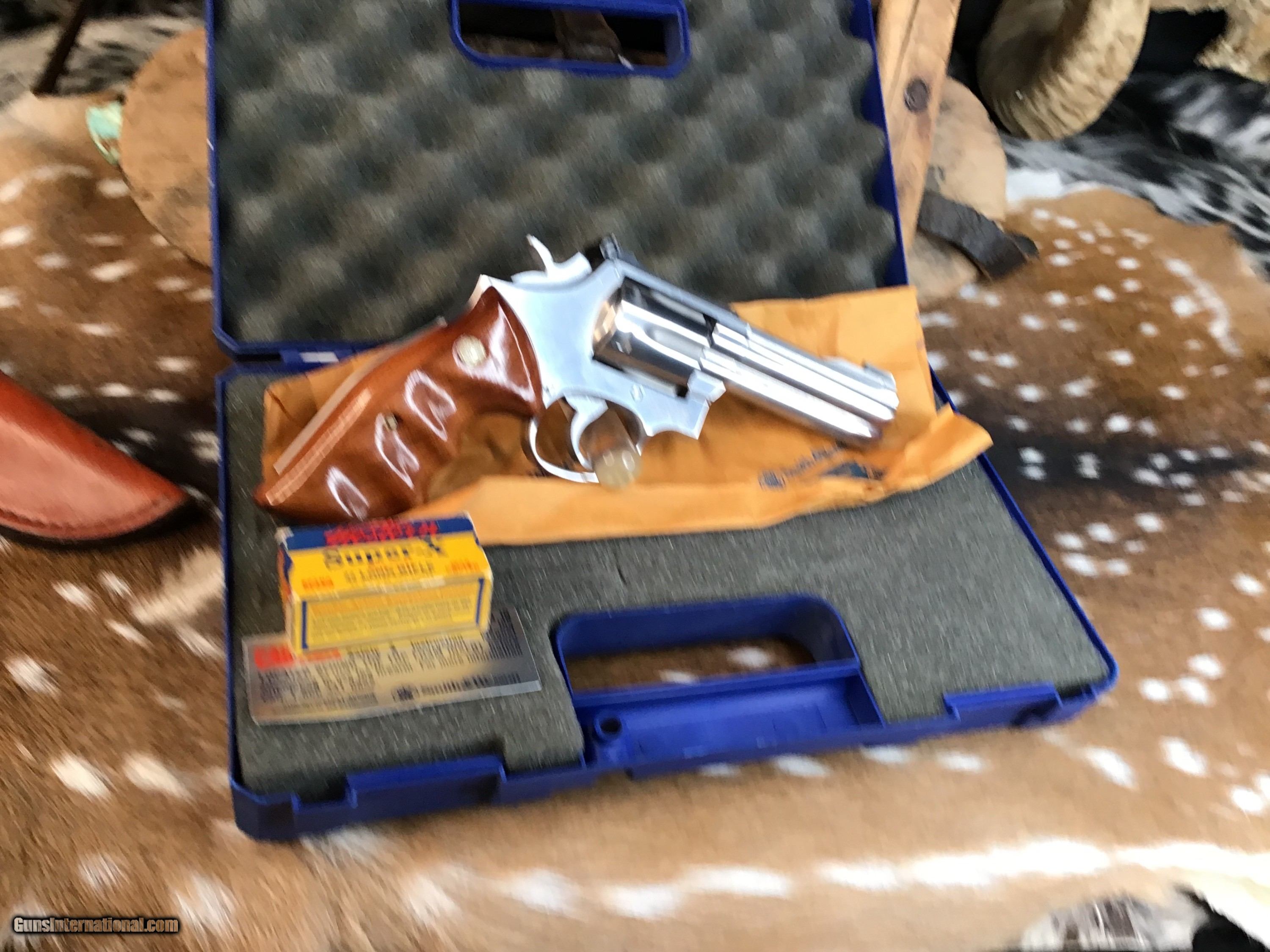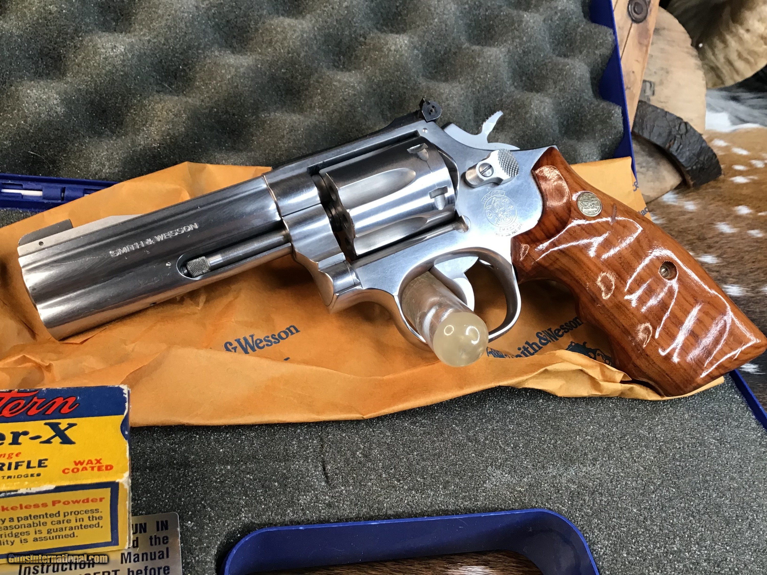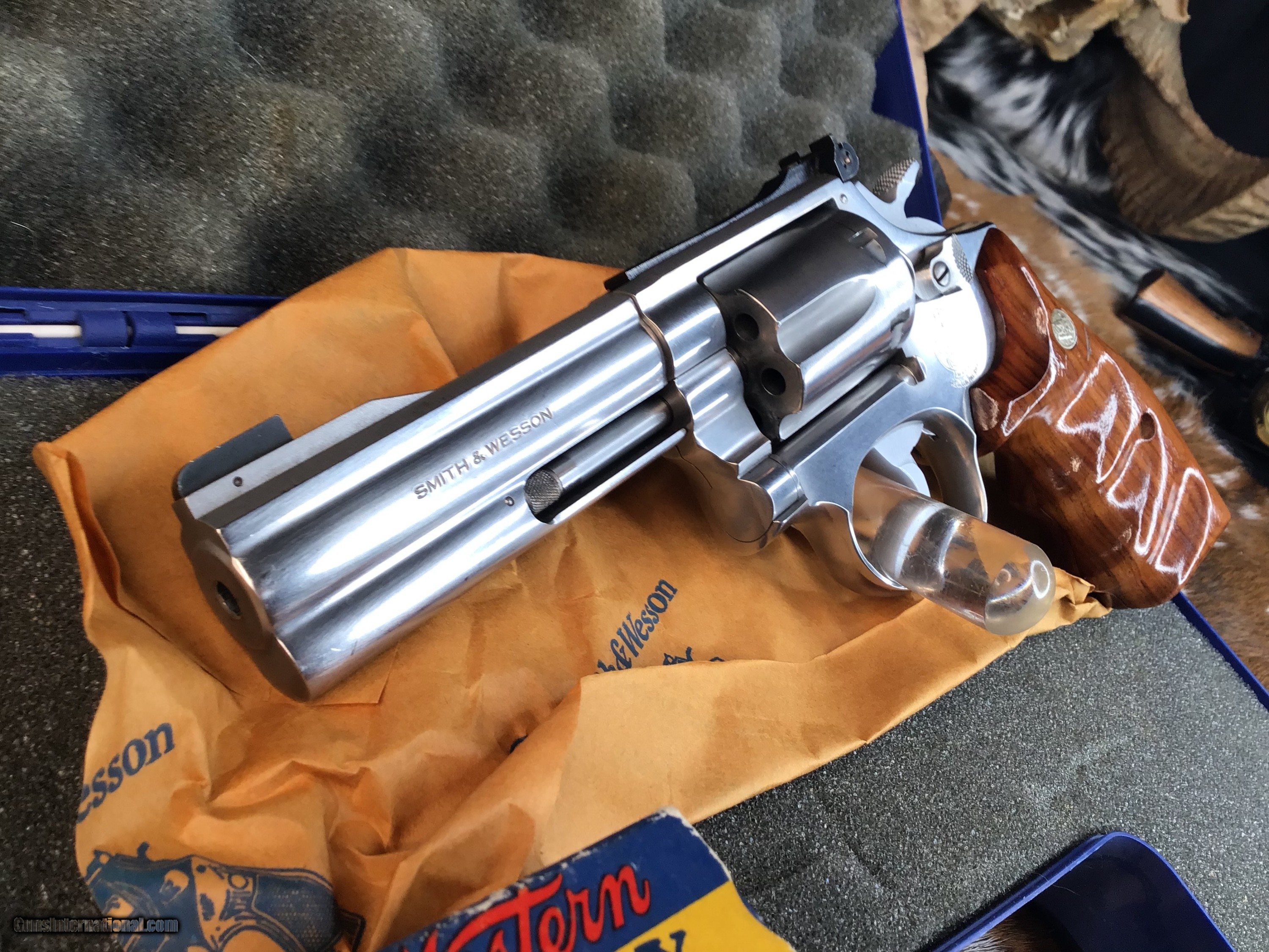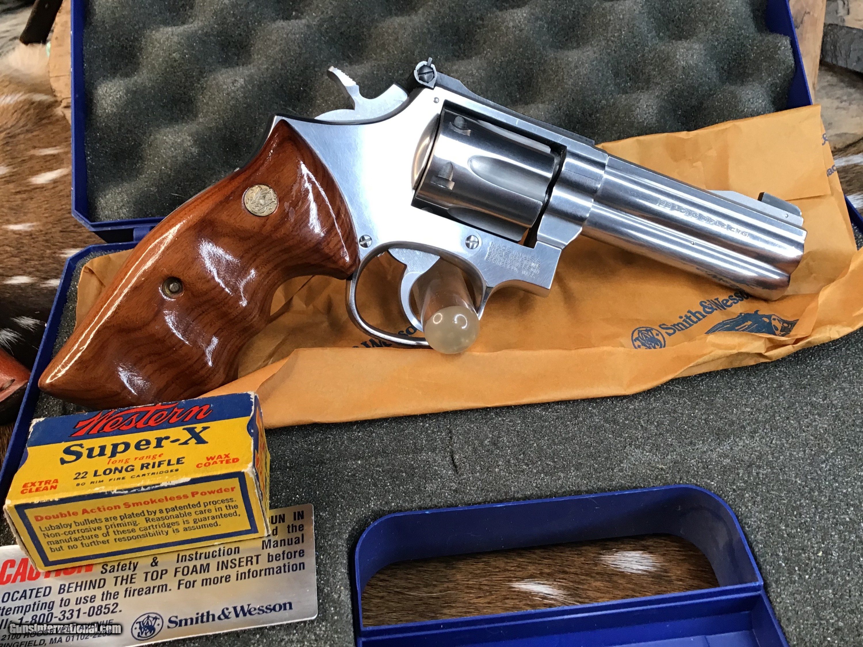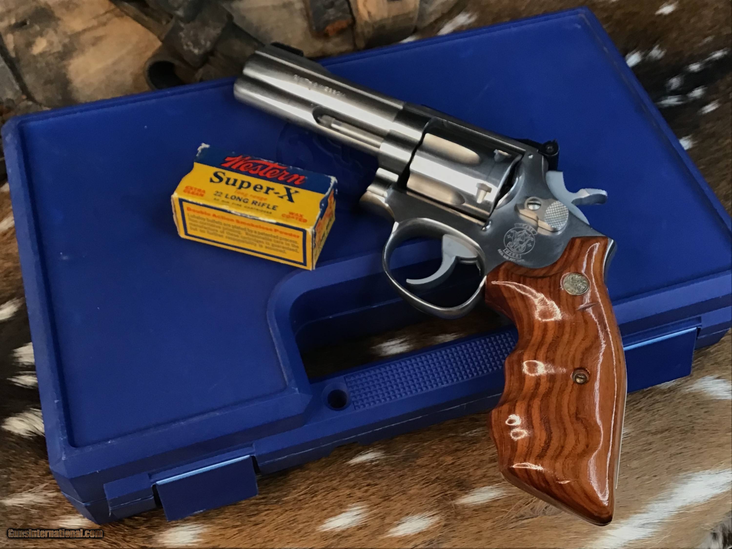 Description: Smith & Wesson pre-lock model 616 no-dash revolver wearing a 4 inch full underlug barrel, adjustable Target sights and gorgeous finger groove wood combat grips with SW medallions. Excellent overall used condition with minor handling marks on grips. Comes in S&as Blue hardcase unnumbered. One of the finest looking revolvers made, a perfect pack or camp gun to enjoy hours of plinking with family and friends. Add 3% if paying with credit card. Free shipping offered to all U.S. Veterans. God Bless America from a proud American, and a Viet Nam Vet , thankful for our freedoms.. paid for by the Blood ,Sweat and Tears of our brave men and women in uniform. Ten Below Firearms is a Veteran owned and operated business. We specialize in out of production models of high quality firearms. We love to ship! We ship to all states where legal, just give us a call! Handguns normally ship for $35 and Long guns for $50 and up for extra length long guns. That's 2-3 day USPS Priority shipping, Delivery conformation and with tracking number. Optional Postal insurance is additional $1.85 per $100 and highly recommended. We are OPEN BY APPOINTMENT ONLY FOR IN PERSON VISITS, We trade, sometimes. All payments sent via USPS Priority mail must be received within FIVE DAYS of date of purchase or item will be relisted for sale. **PROPS MAY BE USED FOR PHOTOS, PROPS ARE NOT INCLUDED WITH THE SALE OF THIS FIREARM** Thank you! Layaway:If needed we offer a 60 day layaway program. We offer FREE 60-day layaway. Buyer must pay at least 1/3 down, 1/3 Due in thirty days and the final balance due in sixty days. On all uncompleted layaways, all payments made will be non-refundable. The 60 days begins the day the buyer commits to buying the gun. 90 day layaway is available with 1/2 down, via phone. All layaway sales are final. Layaway is not available on negotiated prices. SOLD Handgun Caliber: .22 Long Rifle Manufacturer: Smith & Wesson Model: 617 Serial Number: BNW3187 Barrel Length: 4 inch Condition: Excellent Metal Condition: Excellent Wood Condition: Excellent Bore Condition: Excellent Barrel Type: Full underlug Action: DA/SA Triggers: SA Rib: Solid Finish: Satin Stainless Sights: Target adjustable Case: Blue SW hardcase Item Location: MN |