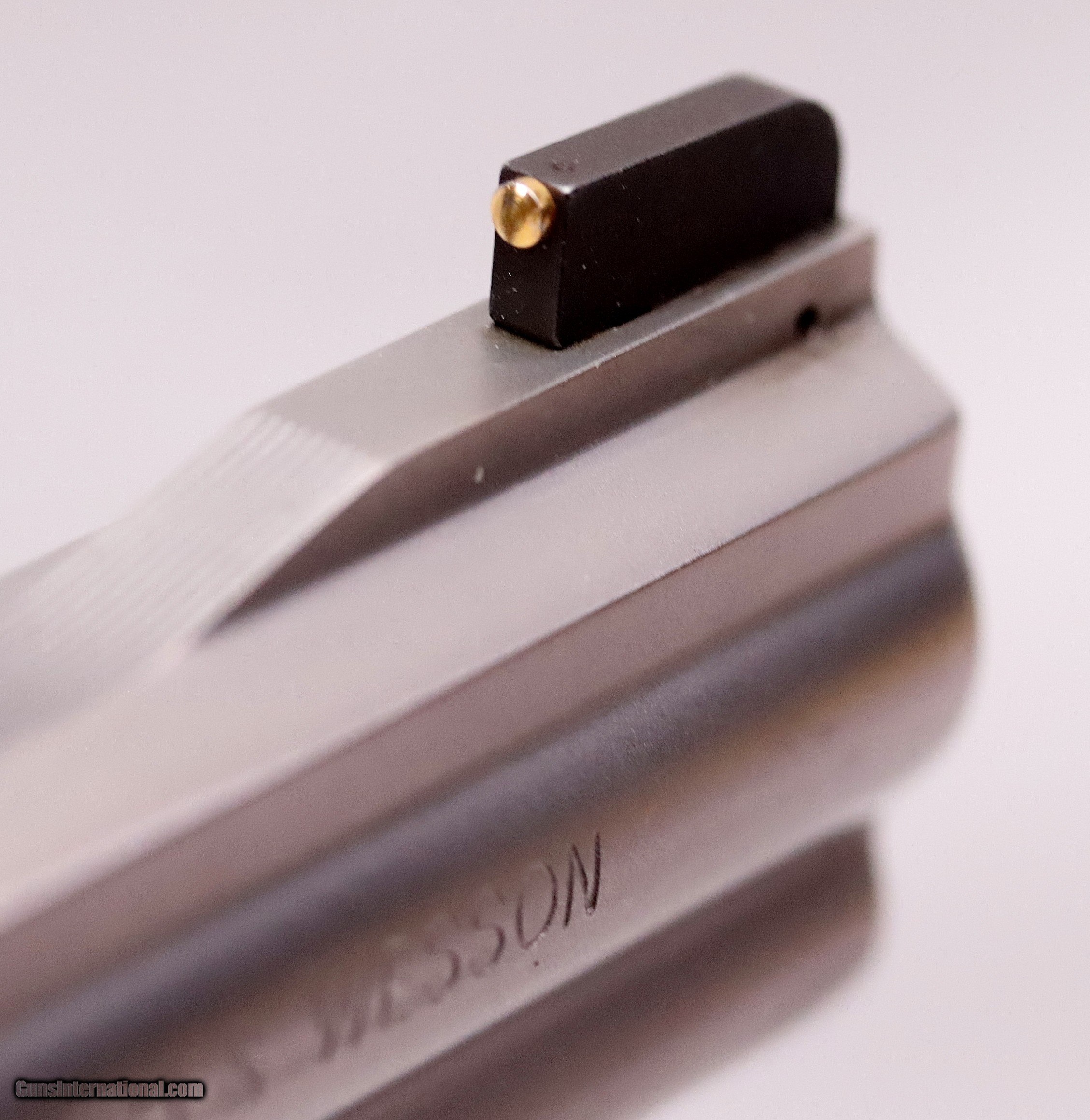 Description: This S&W Model 625-8 is configured as specified by the famous shooter Jerry Miculek. It is chambered for the .45 ACP Rimless cartridge commonly used in semi auto pistols. Moon clips are used to facilitate quick ejection and reloads. In a pinch, the cartridges can be individually loaded but the multiple ejection function is lost. The revolver has an adjustable rear sight and a Gold Dot front sight. It is in excellent condition and has a very slight the drag line. Judging by the bolt face it appears to have been fired very little. It will be shipped in the original numbered box with manual and lock. 2 Extra grips and 3 stainless moon clips are included. .45 ACP with a 4 in barrel. Serial Number: DDR4410 FFL Required. Beaver Creek Arms TERMS & CONDITIONS Objective: As a collector of 35 years and Licensed Firearms Dealer since 1989 I have a clear definition of a satisfactory transaction. I will be paid as we agreed to, and you will be satisfied with your purchase. My goal is to establish a client list of satisfied repeat customers who will recommend me to other collectors. It’s just that simple. Exiled Saudi princes with secret funds needing change from an over paid purchase need not apply. Notice: ALL Federal, State, & Local firearms laws will be followed. I will take NO shortcuts in the process of a legal sale or transfer, so please don’t ask. SHIPPING: Normally shipments are made via U.S.P.S. Priority Mail, Insured, with Signature required. Packing, Shipping and Insurance cost for this handgun is $30.00. Checks to be made out to: Steve Clark Mailed to: 380 Beaver Creek Rd. Dillsburg PA 17019 FIREARMS: Modern firearms, post 1898, can only be shipped to a Type 01 Federal Firearms License address. Curio-Relic firearms, as defined by the BATF list, can usually be shipped to a Type 03 Collectors License address. Some states have additional restrictions such as CA, CT, DC, IL, NJ and NY. A signed valid FFL license copy either mailed or emailed will be required for shipment to only the license address. GUARANTEE: Your complete satisfaction is assured, see objective above. If you are not satisfied, please contact me within 3 days of receipt. Please don’t fire the weapon, safety, function and accuracy are NOT Guaranteed. Any weapon offered by Beaver Creek Arms is never test fired nor is there any representation the gun is functional and safe to fire. These guns are sold for collectors and only represented as used firearms that must be checked by a competent person, observe all the necessary safety precautions prior to attempting to load and fire one of these weapons RETURNS: Returns must be made within 3 days of receipt. They must be received in exactly the same condition with no parts exchanged. If it has been altered, damaged, or fired, a refund will not be made. Packing, shipping and insurance cost will not be refunded. All layaway purchases are returnable for merchandise credit only. PAYMENT: Bank check, Personal check, and Money Orders are preferred. Visa and MasterCard are accepted with a 3% processing fee. For Visa and MasterCard orders please provide the account number, code number, expiration date, name on card, phone number and card billing address. This information can be phoned in, or E-Mailed. All orders must be paid in advance, C.O.D. orders are not accepted. Checks, both Bank and Personal must clear before the order will be shipped, usually a 2 week delay. LAYAWAYS: A 20% deposit is required. Balance is due in 60 days. Deposits are non-refundable and are forfeited after 60 days. Layaway sales are returnable for merchandise credit only. SALES TAX: Pennsylvania state sales tax is 6% for in state purchases. The payment of other states sales tax, if applicable, for shipped items is the buyers responsibility. DISCREET: Client information will remain Confidential. Your privacy is protected. SOLD |