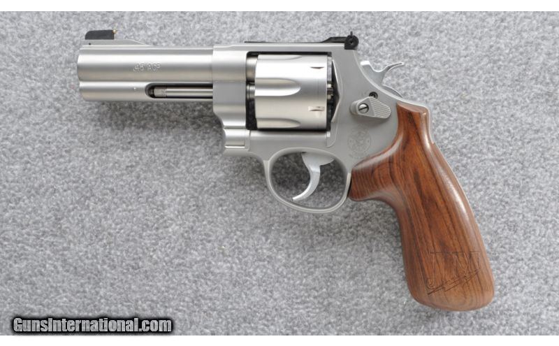Description: Smith & Wesson and Jerry Miculek have collaborated to design a revolver that delivers ultra-fast performance, the Model 625 JM. SOLD Caliber Info: .45 Automatic Colt Pistol Chambers: 6 round cylinder Metal Condition: Very good shows a light cylinder drag mark Wood Condition: Grips look near new Bore Condition: Bright and sharp Barrels: 4 Triggers: Single/Double Action .265¿ Wide Grooved Speed Trigger Stock: Jerry Miculek" Wood Grip Weight: 40.5 oz Sights: Patridge front with gold bead, Micro adjustable leaf rear Extras: Factory case with literature & accessories Item Location: Grand Junction, CO |