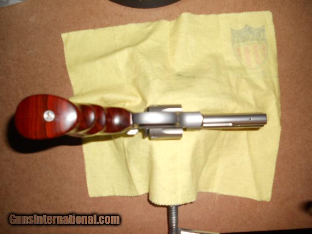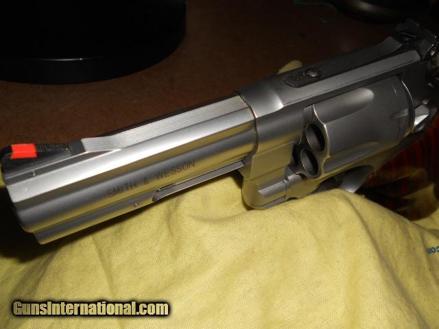 Description: S & W 625-8 (Model 1989) revolver. 4" barrel, .45 ACP cal., factory red ramp front sight & white outline rear sight. Target trigger & hammer. Hogue exotic wood grips & factory hogue rubber grips. Full & half moon clips. Includes box and owners manual. Gun is in 99% condition. (mint). $35.00 shipping & Handling to 48 lower states. PLEASE CHECK YOUR LOCAL AND STATE LAWS BEFORE ORDERING Thank you. SOLD Curio/Relic: Yes |