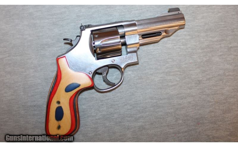 Description: Appears as new, comes with original box. Large frame S&W Performance Center revolver, 4" heavy barrel with shrouded ejector, stainless finish, adjustable sights, 6 shot fluted cylinder, checkered hammer & cylinder latch, and laminated smooth wood grips. .45 Auto SOLD Chambers: Revolver Metal Condition: As new Bore Condition: Bright Barrels: 4 Triggers: Double and single action Butt Pad: Wood grips Item Location: La Vista, NE |