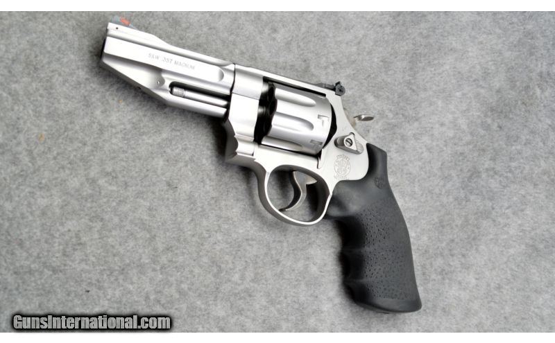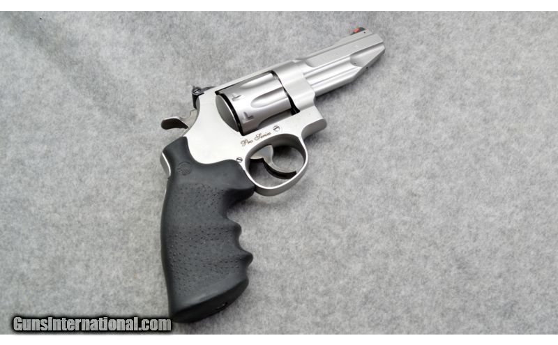 Description: ro series edition revolver. The Pro series has went thru the performance center at smith and Wesson. This process lightens the trigger and action. This revolver has an adjustable rear sight and rubber grips. SOLD Caliber Info: .357 Magnum Chambers: 8 cylinder chambers Metal Condition: Very Good with a few light usage/handling marks present Bore Condition: Very Good, sharp and bright Barrels: 4 inches Triggers: SA/DA Weight: 37 Oz. Sights: Front blade rear adjustable notch Extras: Hard case included Item Location: Farmington, UT |
