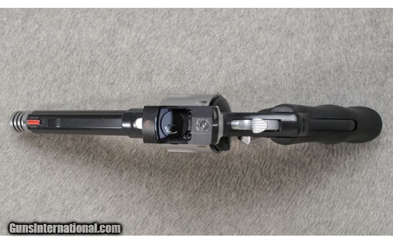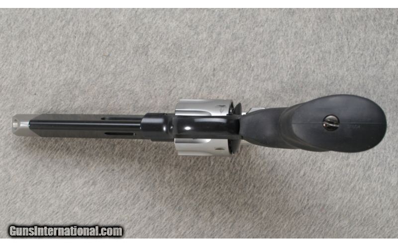 Description: This is a great 8 shot revolver. Chrome hammer, chrome trigger with trigger stop, removable barrel compensator, PC tuned action, cylinder cut for moon clips. Rubber grip is made by Hogue. SOLD Caliber Info: .357 Magnum Chambers: 8 shot revolver. Metal Condition: Very good, some scratches/blemishes. Wood Condition: Rubber grip is in very good condition. Bore Condition: Very good, bright and shiny. Barrels: 5" ported with full lug. Triggers: Double action stainless trigger. Stock: Hogue rubber grip. Weight: 50 oz. Sights: Burris Fastfire 3 redot halo sight and factory ramped blade front. Extras: Box Item Location: Dundee, MI |