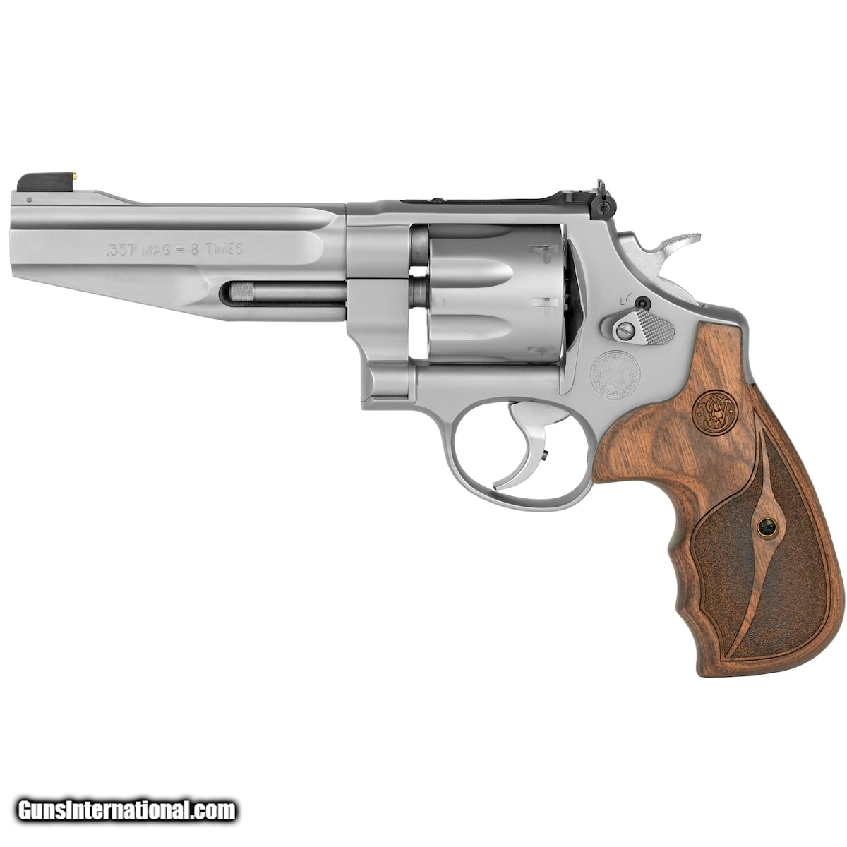 Description: Guns Listing ID: 24586 The Smith & Wesson 627 is a double-action revolver built on a large N-frame and chambered in .357 Mag with an 8-shot capacity. It was originally introduced in 1989 and sometimes referred to as the Model of 1989 but featured a 6-round capacity in an unfluted cylinder before an upgrade in 1996. In addition to a larger capacity the newer model has an unfluted cylinder and shorter barrel. Both feature a stainless steel frame cylinder and barrel as well as gold bead front and rear adjustable sights. Available with wood or synthetic grips the 627 is favored among competition shooters and handgun enthusiasts. Details Action SADA - Caliber .357 Magnum .38 SW Special P - Capacity 8 - Finish Stainless - Material Steel - Grips Wood w2nd Synthetic Included - Sights Gold Bead Adjustable - Barrel Length 5\" - Overall Length 9.5\" - Weight 43.6 oz. - Chrome Flashed Teardrop Hammer - Chrome Trigger and Trigger Stop - PC Tuned Action - Performance Center guns originate from standard designs or are created from the ground up. From hand-cutting and fitting to fine tuning for precision these firearms are top performers. Products from the Performance Center are the ultimate expression of old-world craftsmanship blended with modern technology. SOLD Manufacturer: SMITH & WESSON Model: 627 PERFORMANCE Caliber Info: .357 MAG Condition: new Barrels: 5 BARREL Finish: STAINLESS |