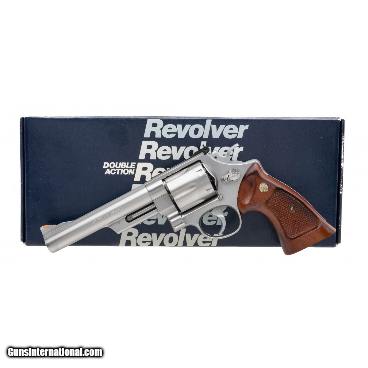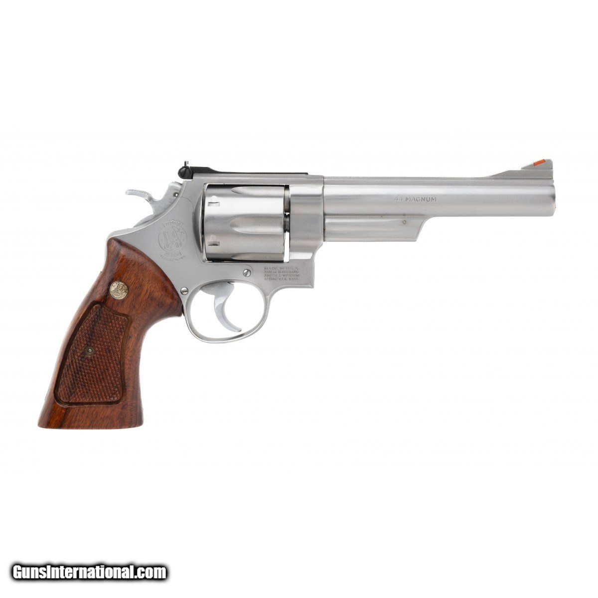 Description: "SN: N937330. Made circa 1980s. .44 Magnum with a 6"" barrel. Bore is in excellent condition. S&W double action stainless steel revolver. Metal is in excellent condition. Checkered wood grips are in excellent condition. Overall condition is excellent. Comes with box. (Consignment) SOLD |