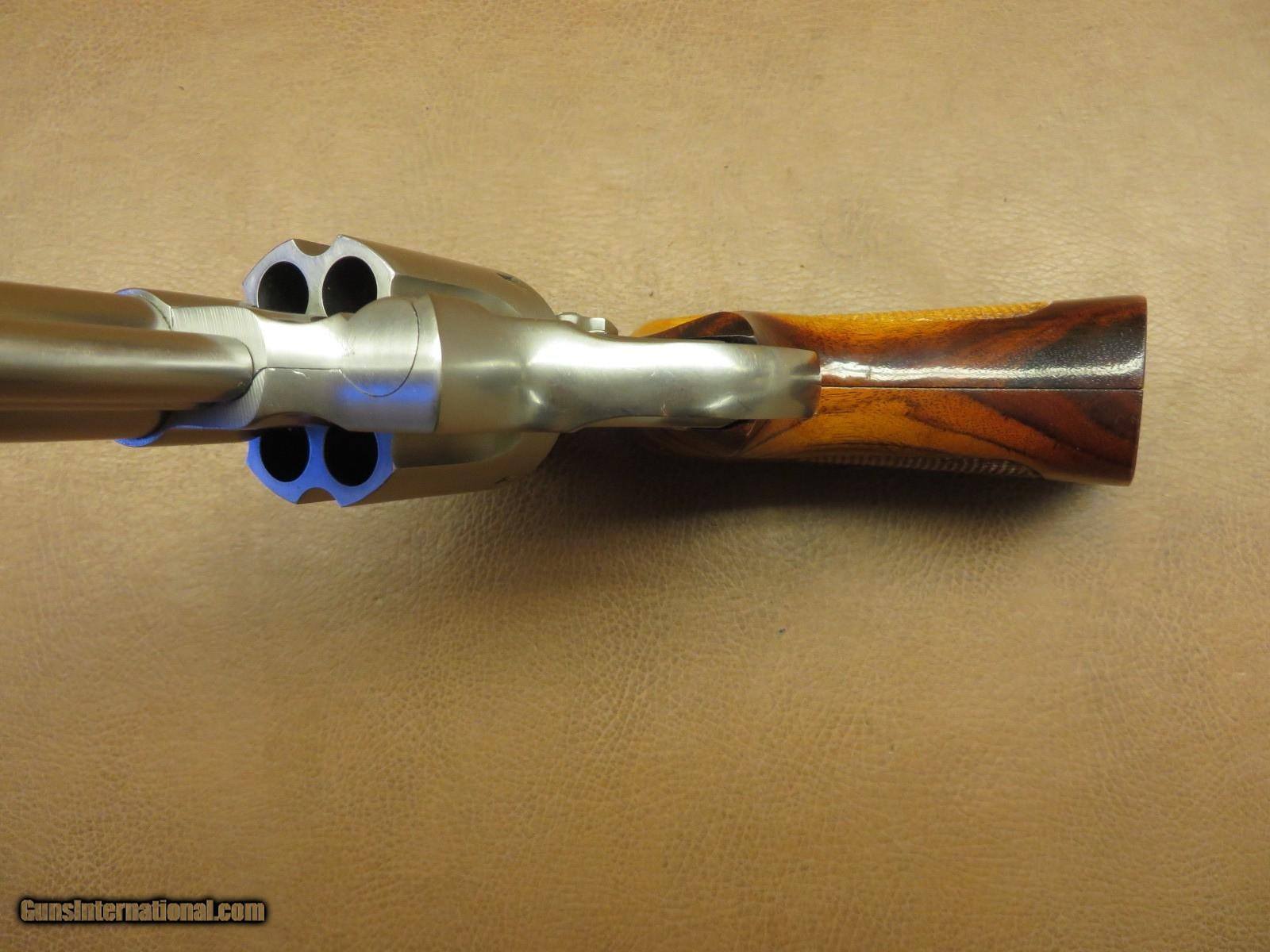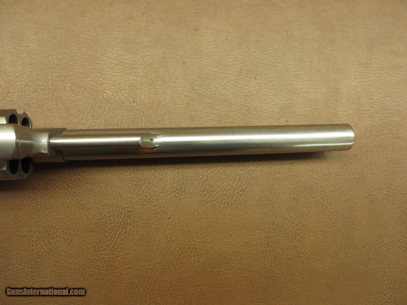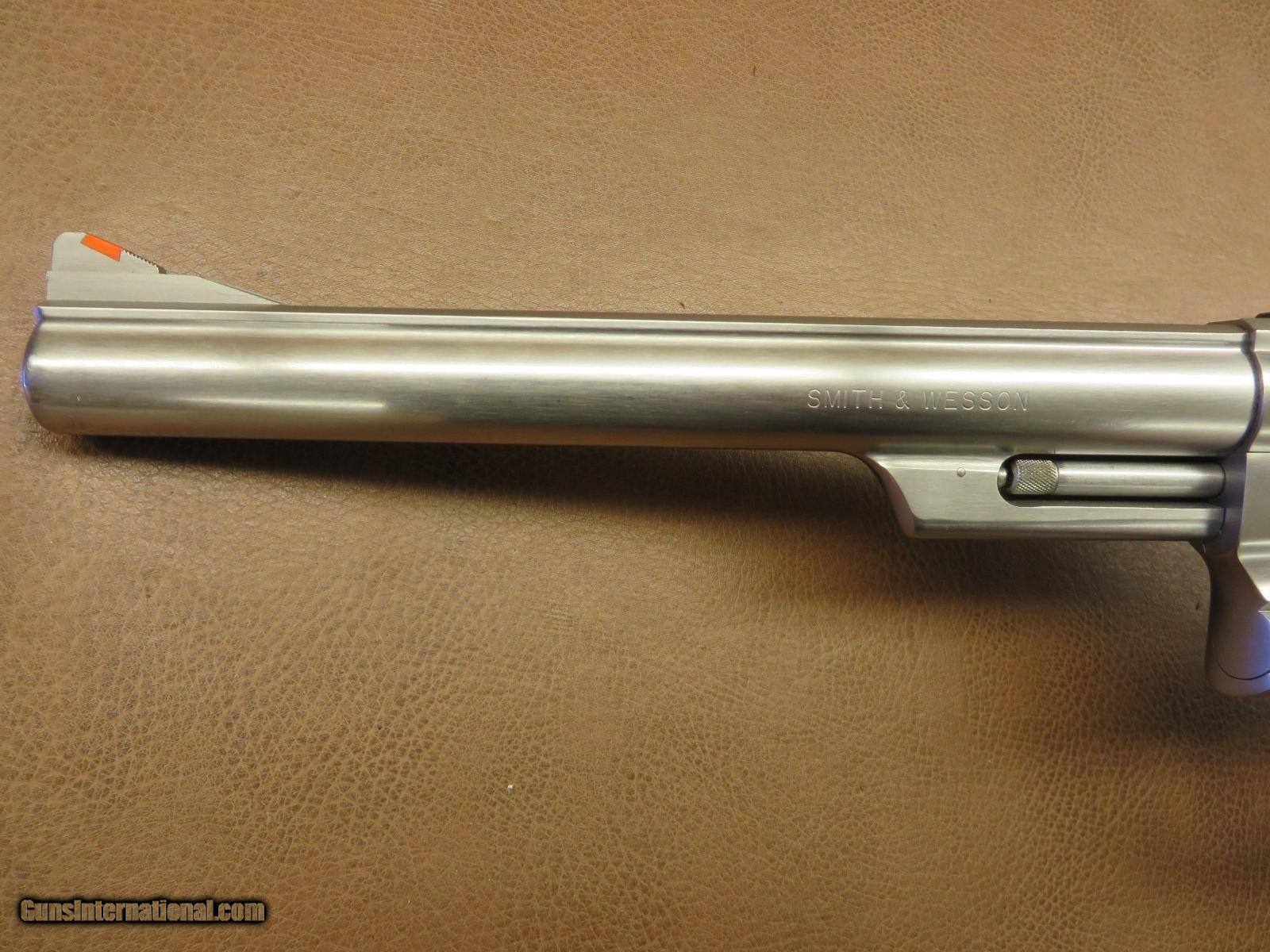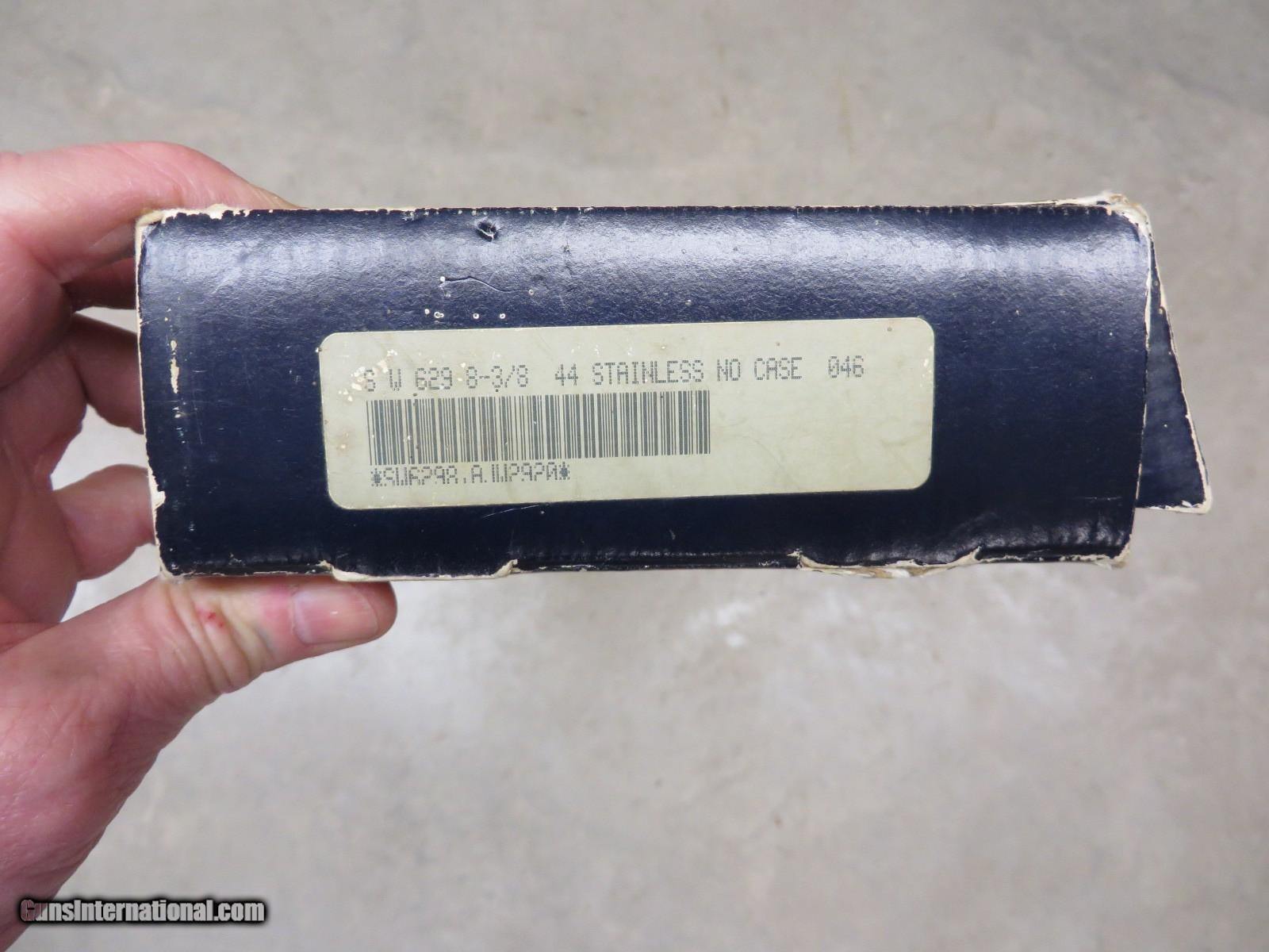 Description: .44 Magnum has 8 3/8 inch barrel with red ramp front sight and white outline adjustable rear. All stainless steel with checkered wood Target grips. Serial number AUT3xxx. Excellent condition in 629 box with papers but box is not numbered to this gun. SOLD Handgun Caliber: .44 Remington Magnum |
