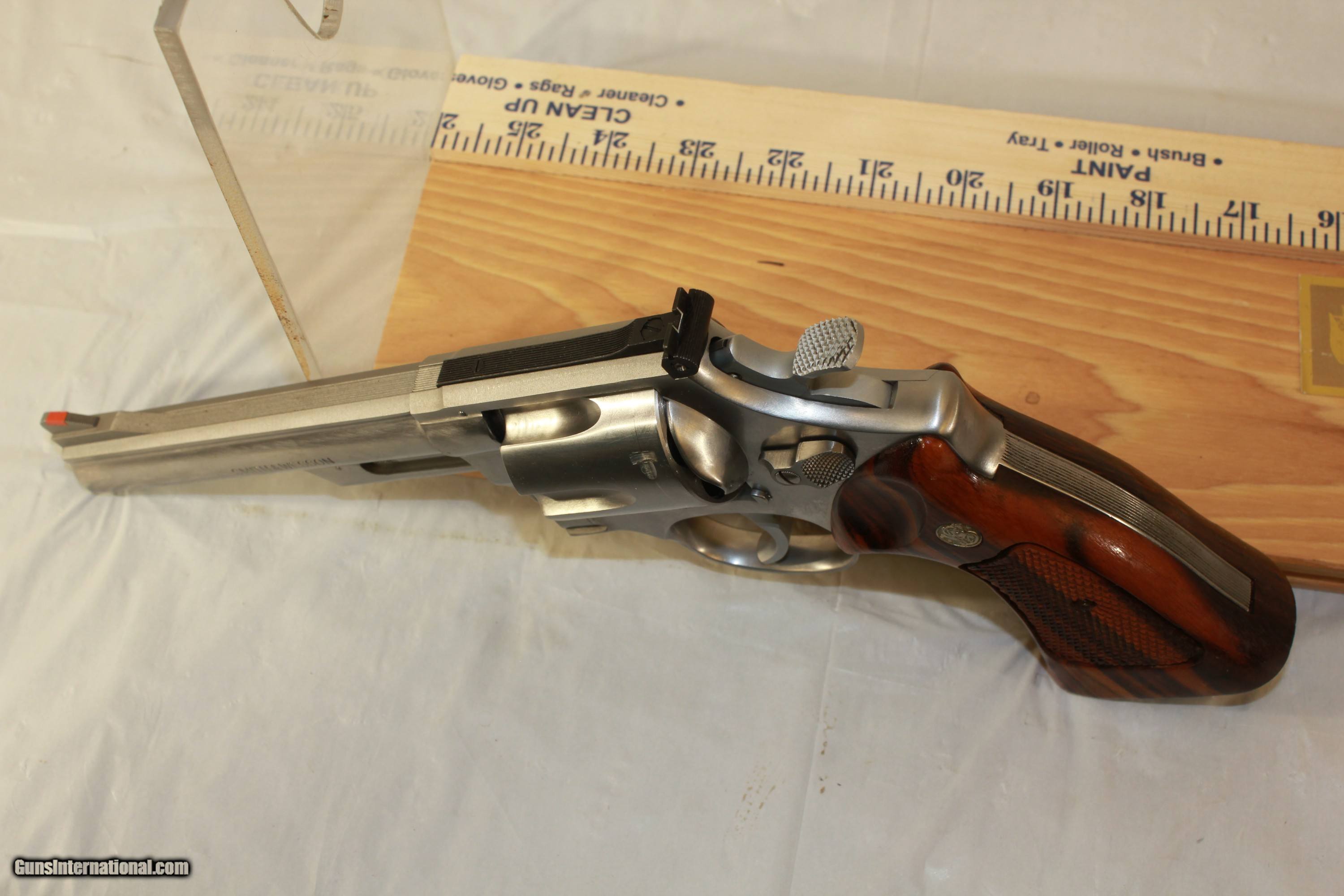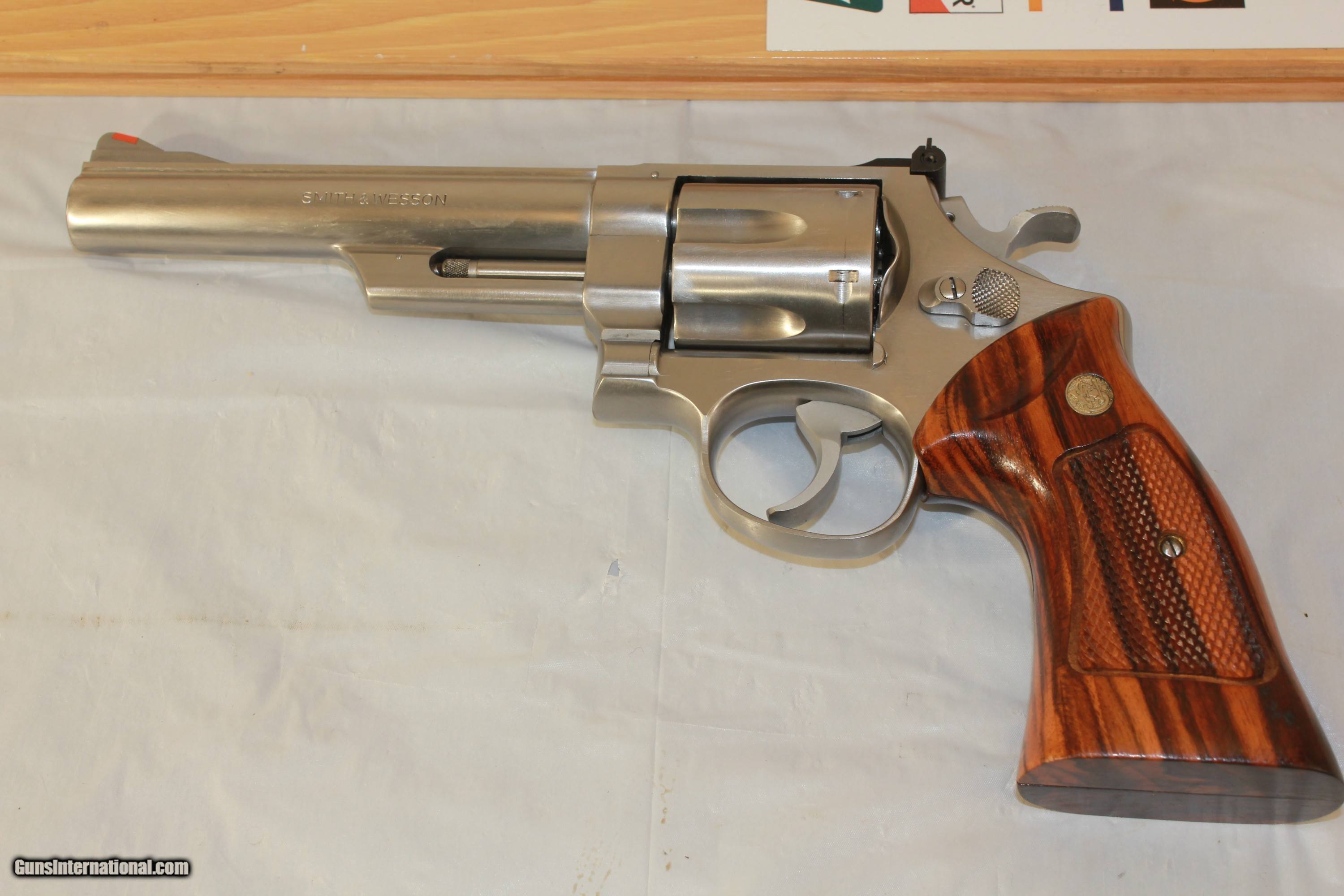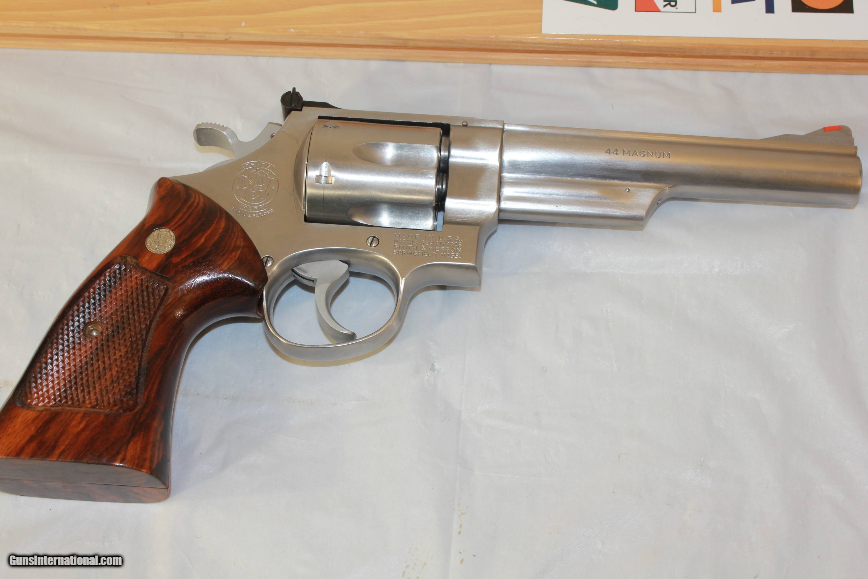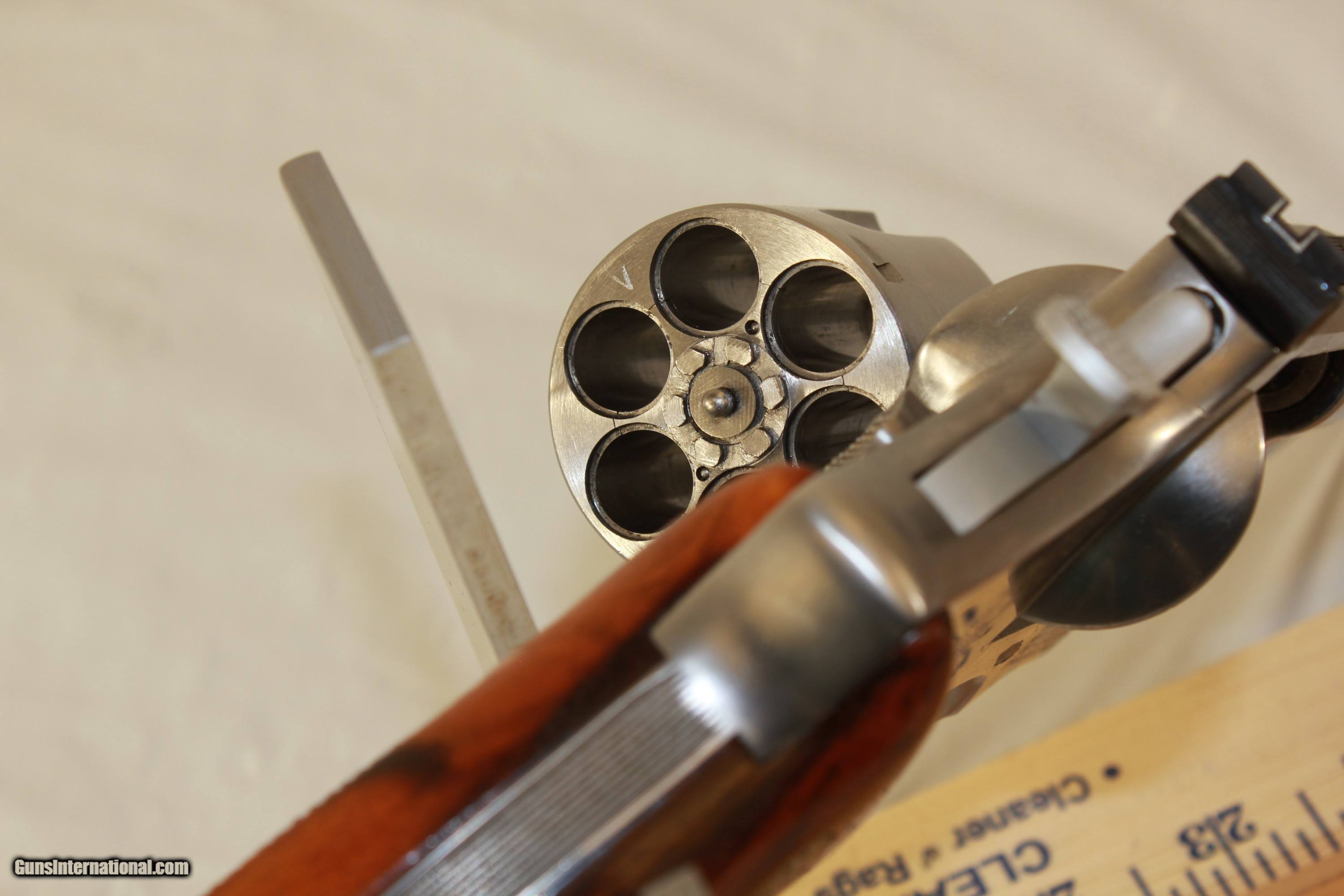 Description: This Smith & Wesson Model 629 Has the early recessed cylinder and pinned barrel. There is no dash behind Mod 629. This model is getting hard to come by, especially in Stainless Steel and the first I have had, It has a 6 inch barrel and is in fine condition. It has the original target grips, target trigger and hammer. The sights are white line rear and red insert front ramp. Shipping via Priority Mail $30.00 SOLD |