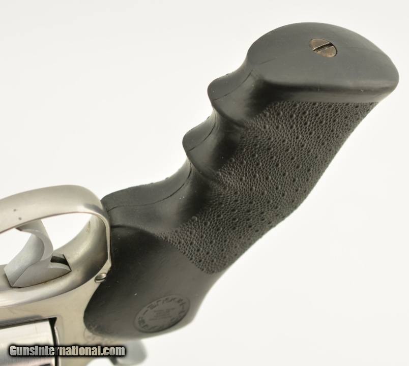 Description: Serial #BBW6097, .44 Magnum, 6 inch barrel with a bright, excellent bore. This is the model 629-2 stainless revolver manufactured by Smith & Wesson in 1988 featuring and unfluted cylinder and full lug barrel. The lightly magnum is in excellent condition with perhaps 94-96% of the original stainless finish on the barrel, cylinder and frame with scattered mild use marks and surface scratches and a mild turn ring on the cylinder. The original Hogue Monogrip is likewise excellent with light use and handling marks. It comes in the original cardboard box numbered to the gun with manual and paperwork. A scarce version of the S&W 44 Magnum Stainless gun that would make a great hunting companion. FFL. SOLD |