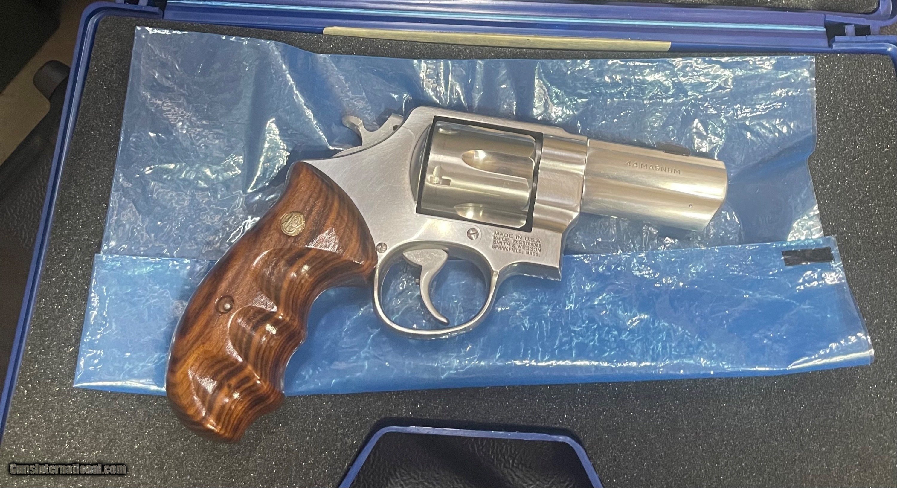 Description: Wow, talk about rare!! This 3 1/4 in barrel 629 features stainless finish, fixed sights, contoured thumb release, red ramp adjustable front sight, and factory compensated. Comes with original large blue performance center case, paper, and tools. I was told by the previous owner only 300 of these were made. Please email with questions. Shipping and insurance included. Cards add 3% SOLD Manufacturer: Smith and Wesson Model: 629-3 Carry Comp Barrel Length: 3 1/4 in Condition: Used Metal Condition: Excellent Wood Condition: Excellent Bore Condition: Excellent Finish: Stainless Sights: Fixed Manufacture Date: 1992 Item Location: 37075 |