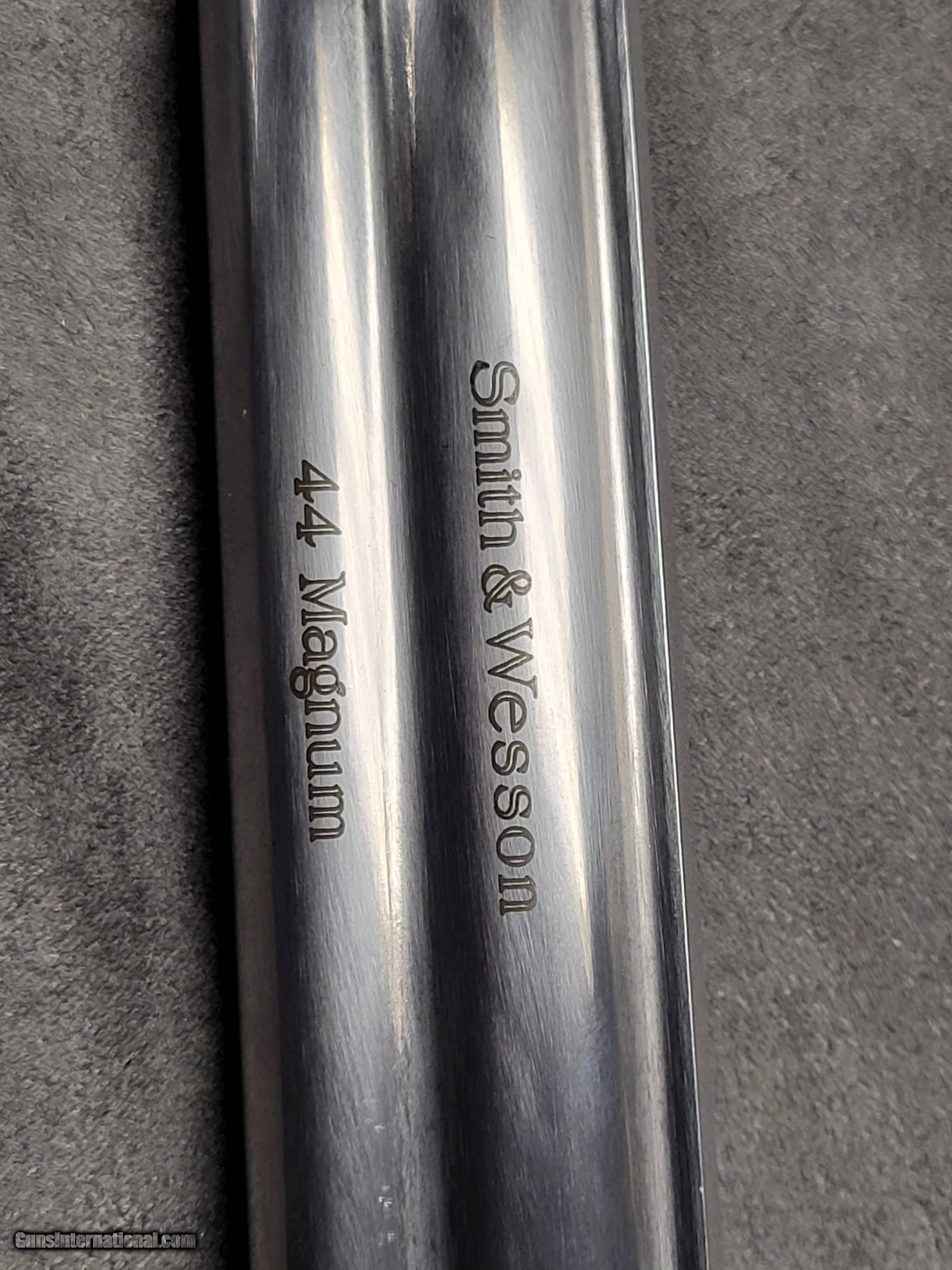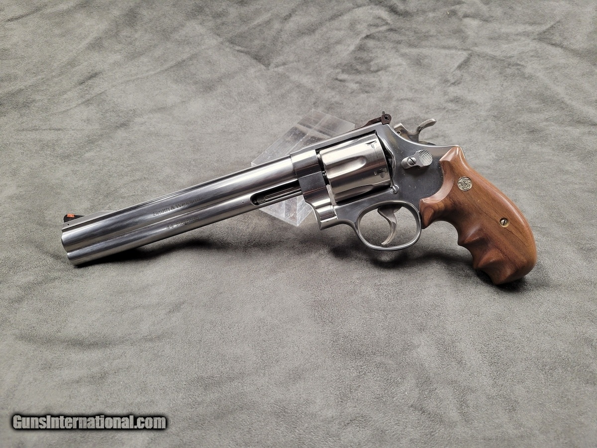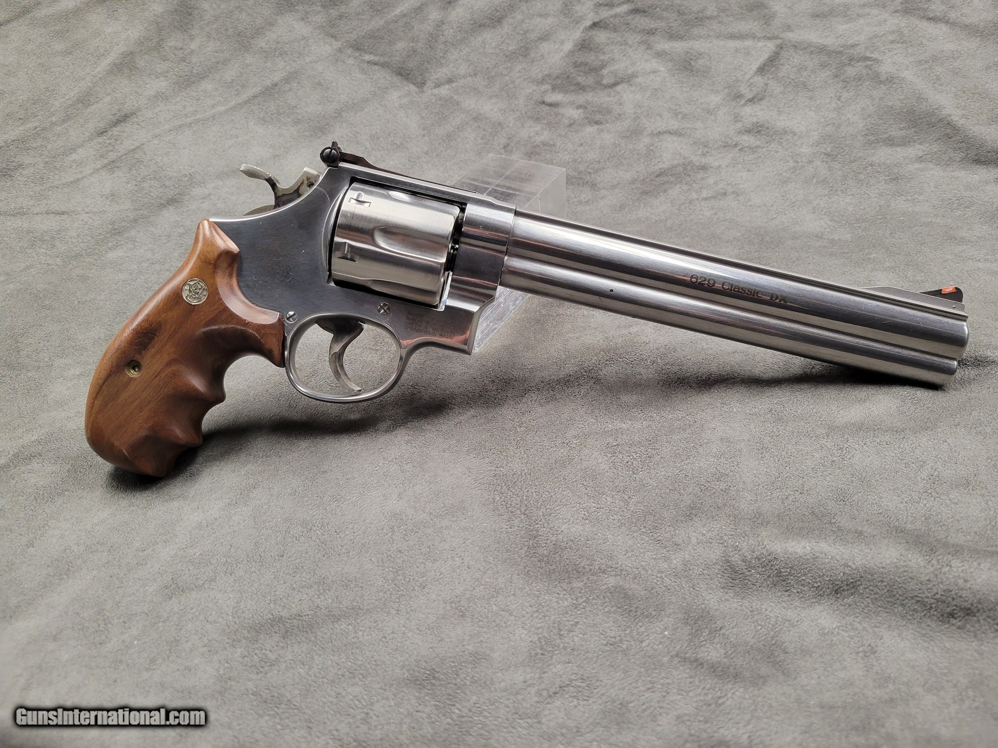 Description: Guns Listing ID: 416737 Model 629-4 Classic Deluxe Double / Single Action 8 3/8” Barrel Stainless Steel Custom Shop Wooden Grips Windage & Elevation adjustable Rear Sight Front Serrated ramp with red insert Front Sight Full-Length Barrel Underlug Mfg. April 1995 The SN starts with the letters, BST.... I chuckled because it looks like an acronym for \"The Beast\" Note: The 8\" barrel is no longer available through Smith & Wesson SOLD Manufacturer: SMITH & WESSON Model: 629-4 Caliber Info: 44 MAG Condition: Used - Non-Certified Barrels: 8.375 BARREL Finish: STAINLESS STEEL |
