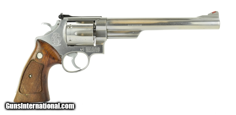 Smith & Wesson 629 .44 Magnum caliber revolver. Scarce 8 3/8” model with pinned barrel and recessed cylinder. Has wear and marks, might have been a hunting gun. Bore and action are excellent. Has “N” serial number.