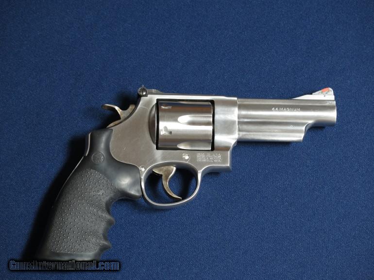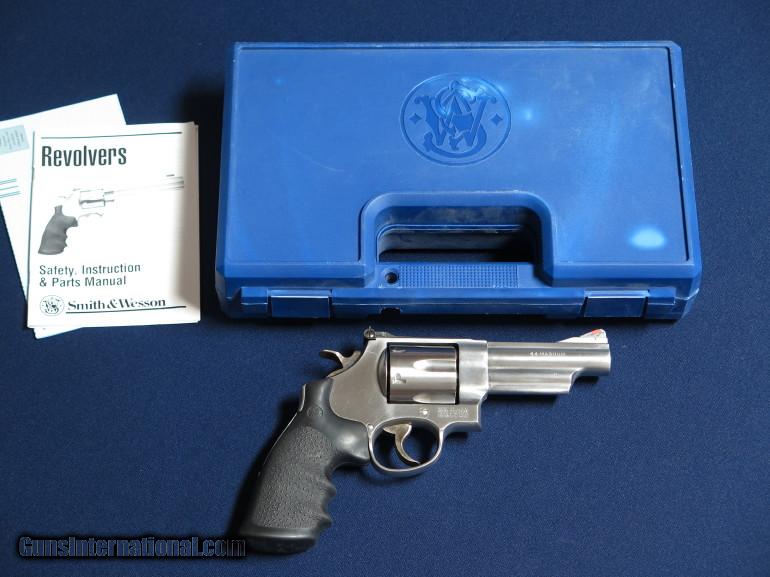 Description: Smith & Wesson 629-5 44 Mag. Stainless. 4" barrel. Target trigger and hammer. Red ramp white outline sights. 98% with case and papers. SOLD |