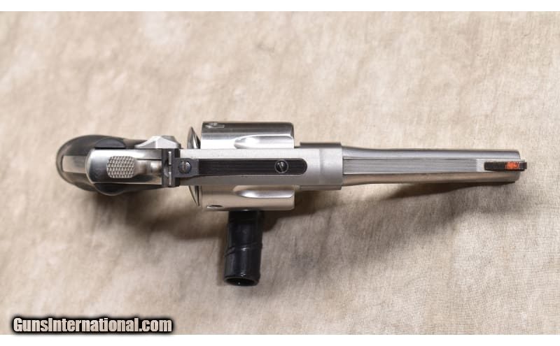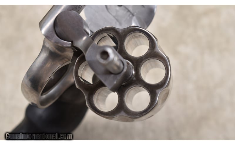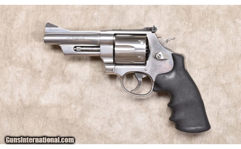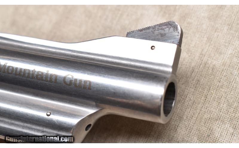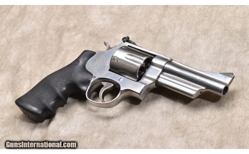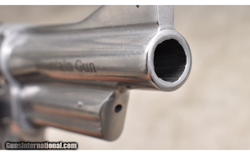 Description: The Smith & Wesson Model 629-5 Mountain Gun is a favorite among handgun hunters and revolver enthusiasts. It is an American classic in every way. This handgun is chambered in .44 Magnum and has a 4-inch barrel. Great personal protection for that Alaska hunting trip. .44 Magnum SOLD Chambers: .44 Magnum Metal Condition: Good with some minor surface wear. Bore Condition: Bright and shiny with good rifling. Barrels: 4 Inches. Triggers: Factory Butt Pad: Black rubber. Weight: 33.12 oz. Sights: Red ramp and adjustable notch. Item Location: Rogers |