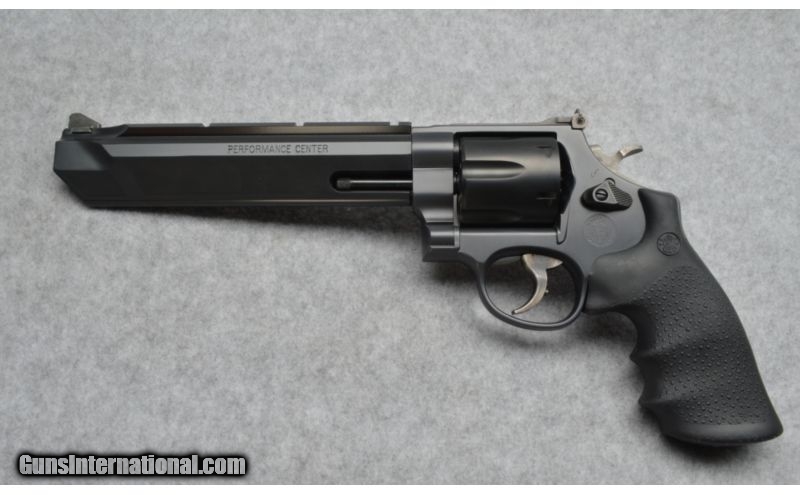 Description: Smith & Wesson Model 629 Performance Center, a competition-oriented variant with a weighted barrel for reducing recoil. SOLD Caliber Info: .44 Mag. Chambers: 6 Round cylinder. Metal Condition: Factory new. Bore Condition: Factory new Bright and shiny. Barrels: 7 1/2 Inch. weighted with compensation vents. Triggers: Single for double and single action. Stock: Black textured grips with embossed S&W logo. Weight: 3 Pounds 8 Ounces. Sights: Factory adjustable Target sights with rail for a scope. Extras: Factory box. Item Location: Noblesville, IN |