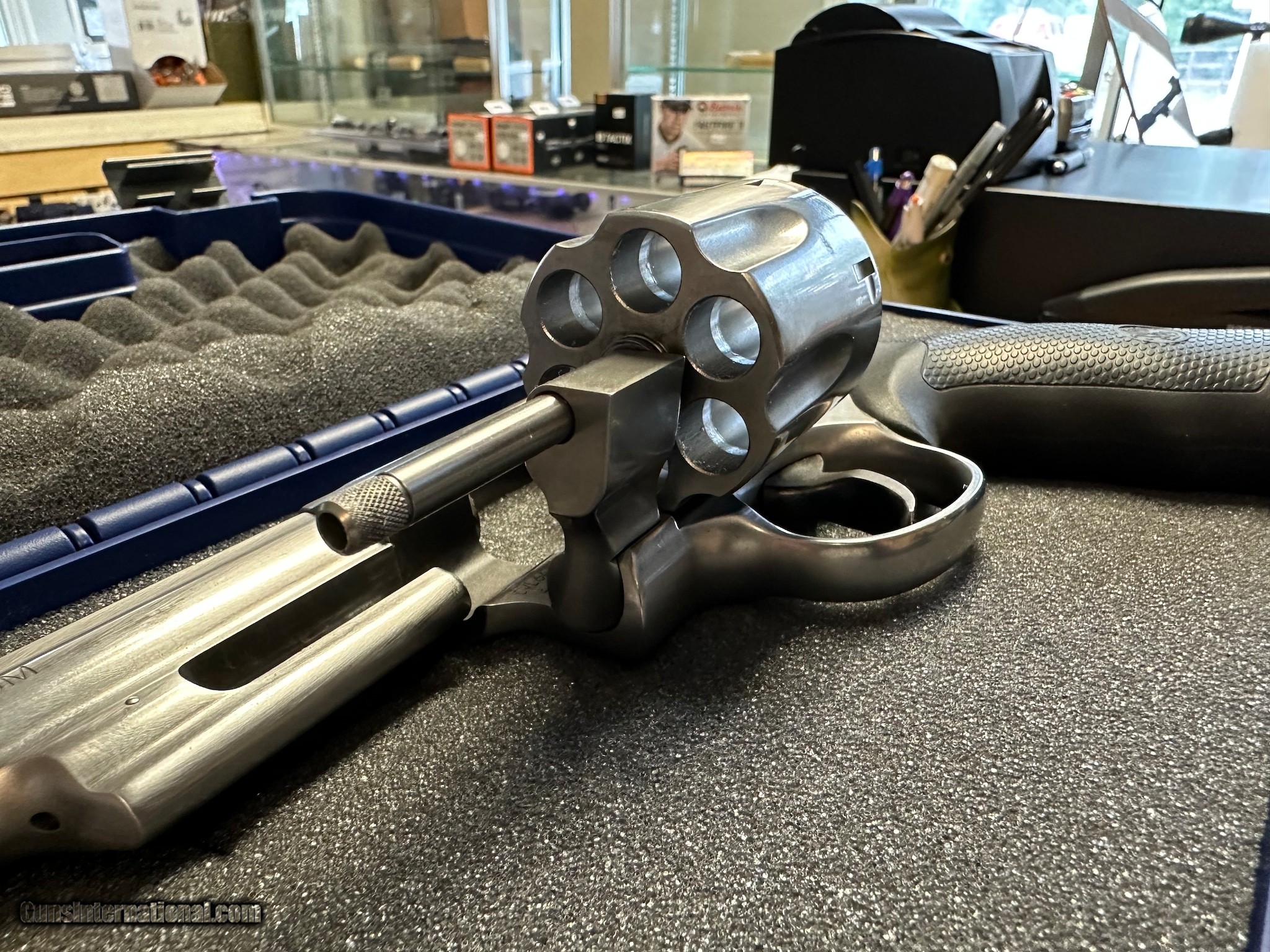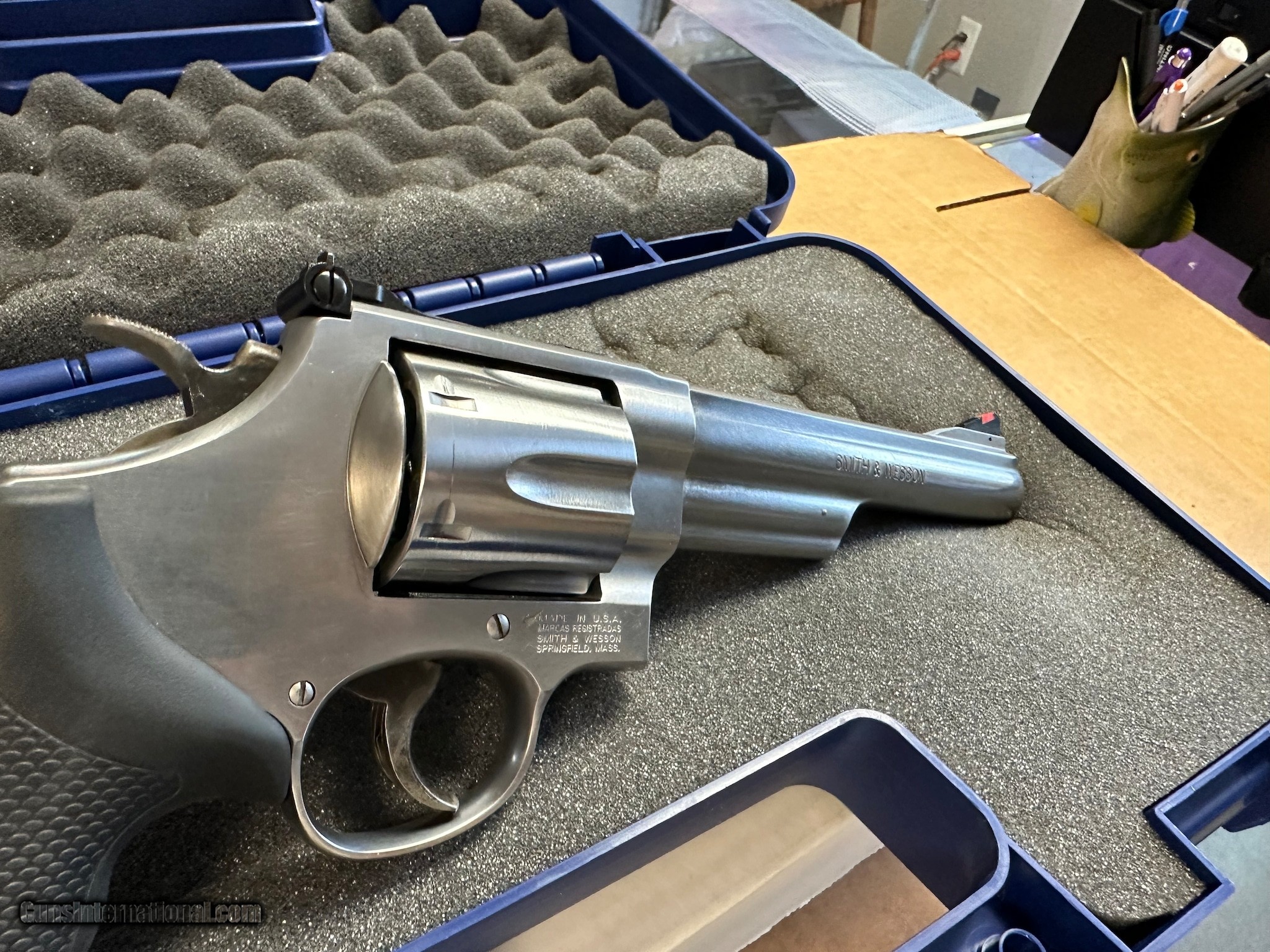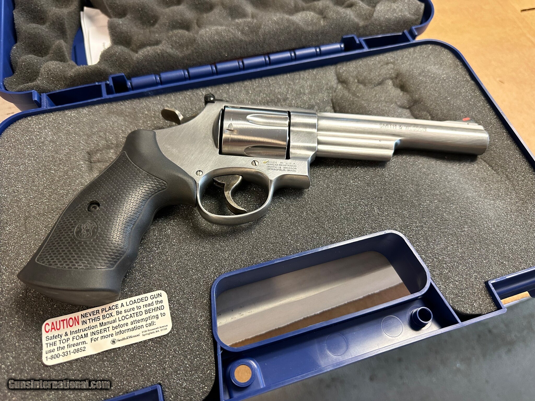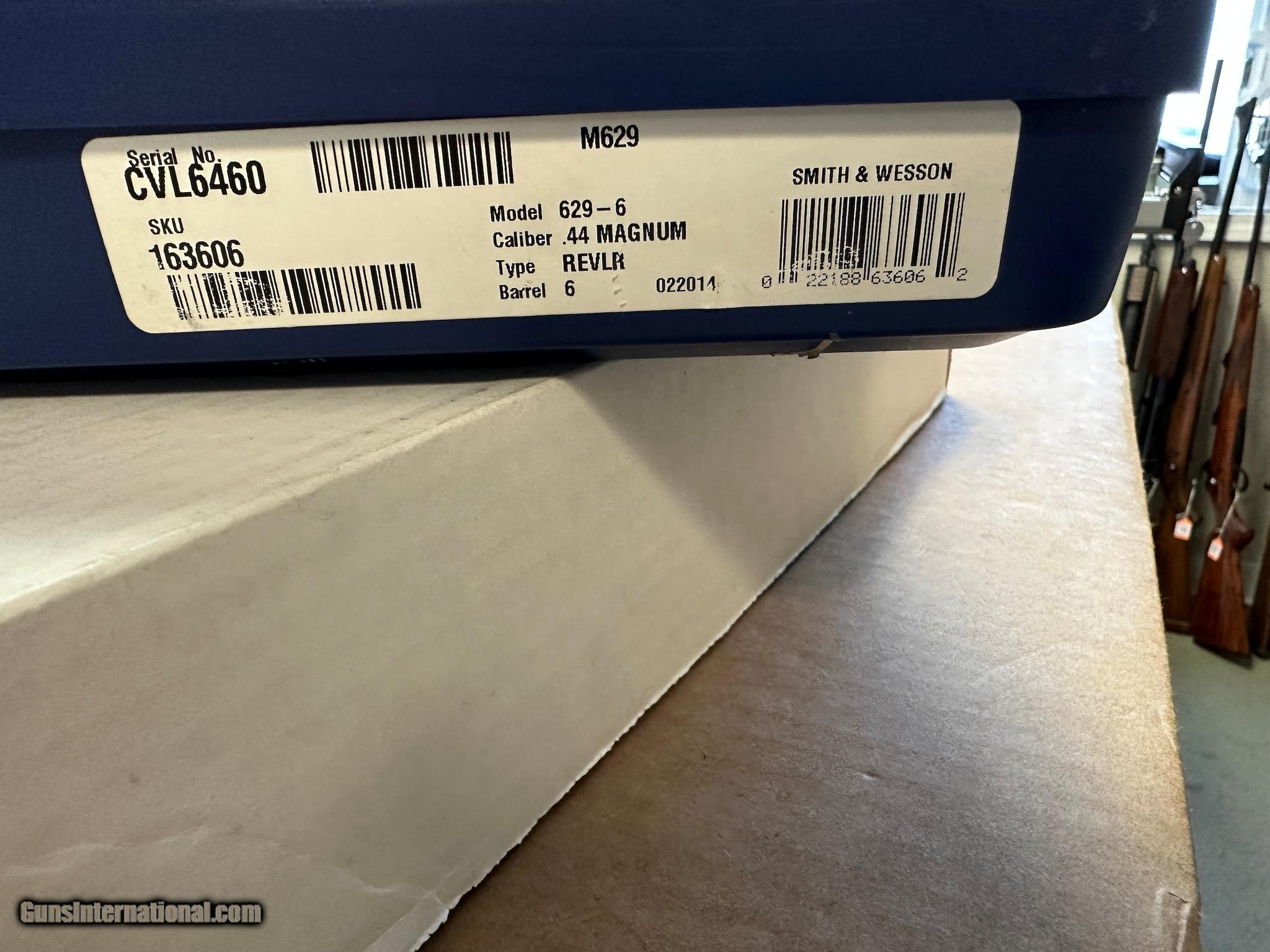 Description: Guns Listing ID: 909844 Smith & Wesson 163606 Model 629 44 Rem Mag or 44 S&W Spl Stainless Steel 6\" Barrel & 6rd Cylinder, Satin Stainless Steel N-Frame, Red Ramp Front/White Outline Rear Sights. EXCELLENT CONDITION. Doesn‚‚t appear to have been fired. MAYBE A FACTORY ROUND FIRED. Smith & Wesson‚‚s large frame revolver is the first choice for handgun hunters and competitive shooters. The Smith & Wesson Model 629 is an N frame single/double action revolver with a black synthetic grip, stainless steel barrel, frame, and cylinder. It has red ramp front and adjustable white outline rear sights, and an overall length of 11.6\". This model has a 6\" barrel. Brand Smith & Wesson Category Revolvers Model Model 629 Caliber 44 Mag Capacity 6rd Action DA / SA Frame Finish Stainless OAL 11.63\" Frame Material Stainless Steel Sights Red Ramp Front / Adjustable White Outline Rear Barrel Finish Stainless Frame Size Large N-Frame Grips Black Finger Grooved Polymer Cylinder Material Stainless Steel Cylinder Finish Stainless Safety Internal Lock Barrel Length 6\" Max Capacity 6 Weight 45 oz Frame Description Stainless Steel Hammer Style Expos SOLD Manufacturer: SMITH & WESSON Model: 629-6 Caliber Info: 44 MAG Condition: Used - Non-Certified Barrels: 6 BARREL Finish: STAINLESS |