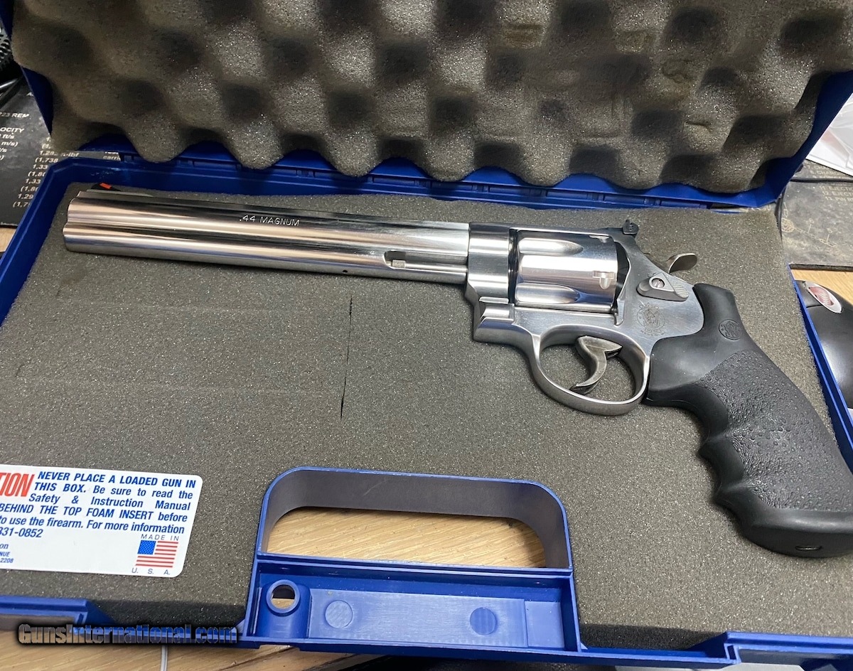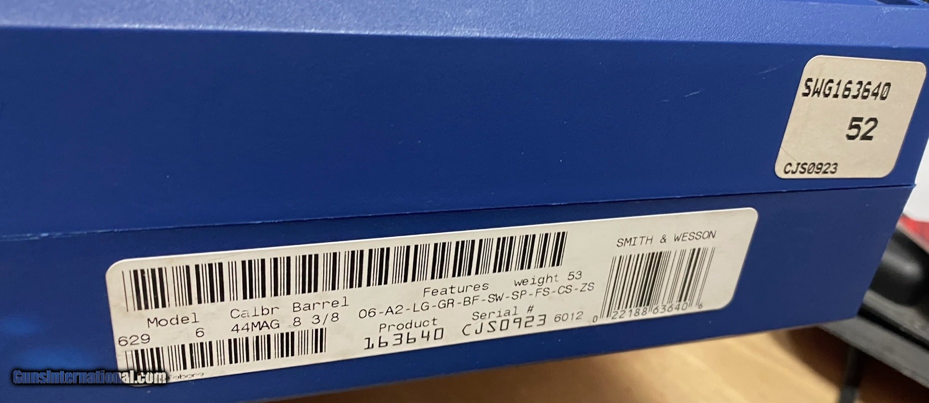 Description: Guns Listing ID: 741262 Up for sale is a Used - Excellent Condition Smith & Wesson Model 629-6 .44 Magnum 8 3/8\" 6rd Stainless w/Factory Box. This revolver is used, in an estimated 90% condition as shown, with little to no external wear, light scorch marks on the front of the cylinder and frame, excellent bore and mechanical function as pictured. Includes factory original matching box. Manufactured between 2001-2004 according to factory data. SOLD Manufacturer: SMITH & WESSON Model: 629-6 Mfg 2001-2004 w/Factory Box Caliber Info: .44 MAGNUM Condition: Used - Non-Certified Barrels: 8.375 BARREL Finish: STAINLESS |
