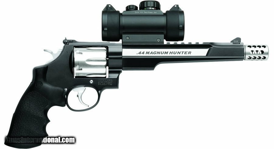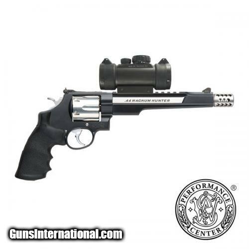 Description: Manufacturer: Smith & Wesson Model: PERFORMANCE CENTER® Model 629 .44 Magnum® Hunter SKU: 170318 Caliber: .44 Magnum, .44 S&W Special Action: Single/Double Capacity: 6 Rounds Barrel: 7.5" Stainless Steel, Muzzle Brake Frame: Stainless Steel, Two-Tone Cylinder: Stainless Steel Overall Length: 14" Grips: Black Synthetic Red Dot/ Green Dot Optical Sight Included Sights: Front- Red Ramp, Rear - Adjustable Weight: 59.4 oz All items are factory new in box unless otherwise stated. Based on the information available to us, the above specifications describe this item to the best of our knowledge. For further information, please contact or visit the manufacturer's . SOLD |