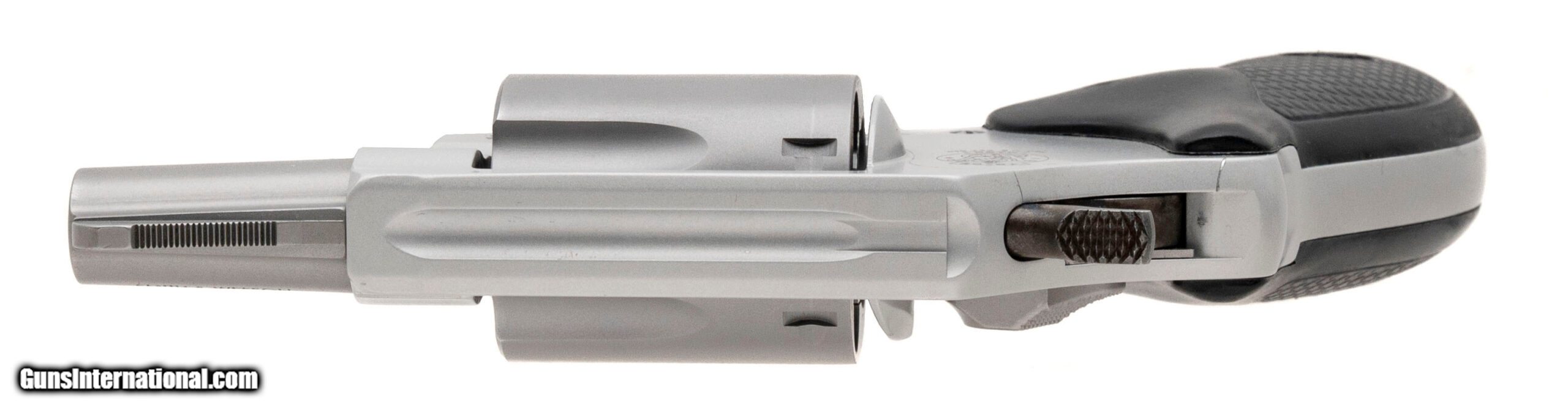 Description: "SN: DNZ3499. Modern production, .38S&W SPL.+P with a 2"" stainless steel barrel. Bore is excellent. Alloy J-frame revolver with a 6rd stainless steel cylinder, matte silver finish, and black rubber grips. Minor marks to finish, most notably to the backstrap. Overall condition is very good. SOLD |