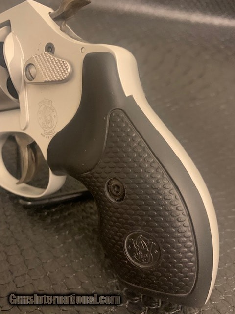 Description: Guns Listing ID: 518975 PRODUCT DETAILS DETAILS MFR# 163050 UPC: 0022188630503 Caliber: .38 S&W Special +P Capacity: 5 Rounds Barrel Length: 1.875\" / 4.7 cm Front Sight: Integral Rear Sight: Fixed Grip: Synthetic Action: Single/Double Action Frame Size: Small - Exposed Hammer Finish: Matte Silver Overall Length: 6.31\" / 16.0 cm Material: Aluminum Alloy Frame Stainless Steel Cylinder Weight Empty: 15 oz / 425.3 g Condition - USED - 98% SOLD Manufacturer: SMITH & WESSON Model: 637 Caliber Info: .38 Special + P Condition: Used - Non-Certified Barrels: 1.9" barrel Finish: STAINLESS |