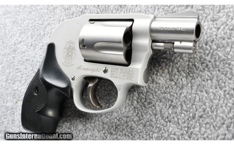 Description: The streamline, lightweight, no-snag design of the Smith & Wesson® Model 638 Airweight® makes it an ideal concealed carry double-action revolver. The shrouded hammer of the 638 eliminates the risk of the hammer getting snagged on clothing, holsters, or purses when drawing the weapon in a self-defense situation, The Model 638 is built on Smith & Wesson's famous J-Frame; it has a 5-shot cylinder rated for +P .38 Special ammunition. Stainless steel and alloy construction resist corrosion caused by humidity and perspiration when the revolver is carried close to the body. .38 S&W Special SOLD Chambers: .38 S&W Special in a five round revolver Metal Condition: "Very good, light cylinder mark Bore Condition: Very good Barrels: 1.88 Triggers: Single/Double Action (shrouded hammer) Weight: 14.6 oz Sights: Fixed Item Location: Grand Junction, CO |