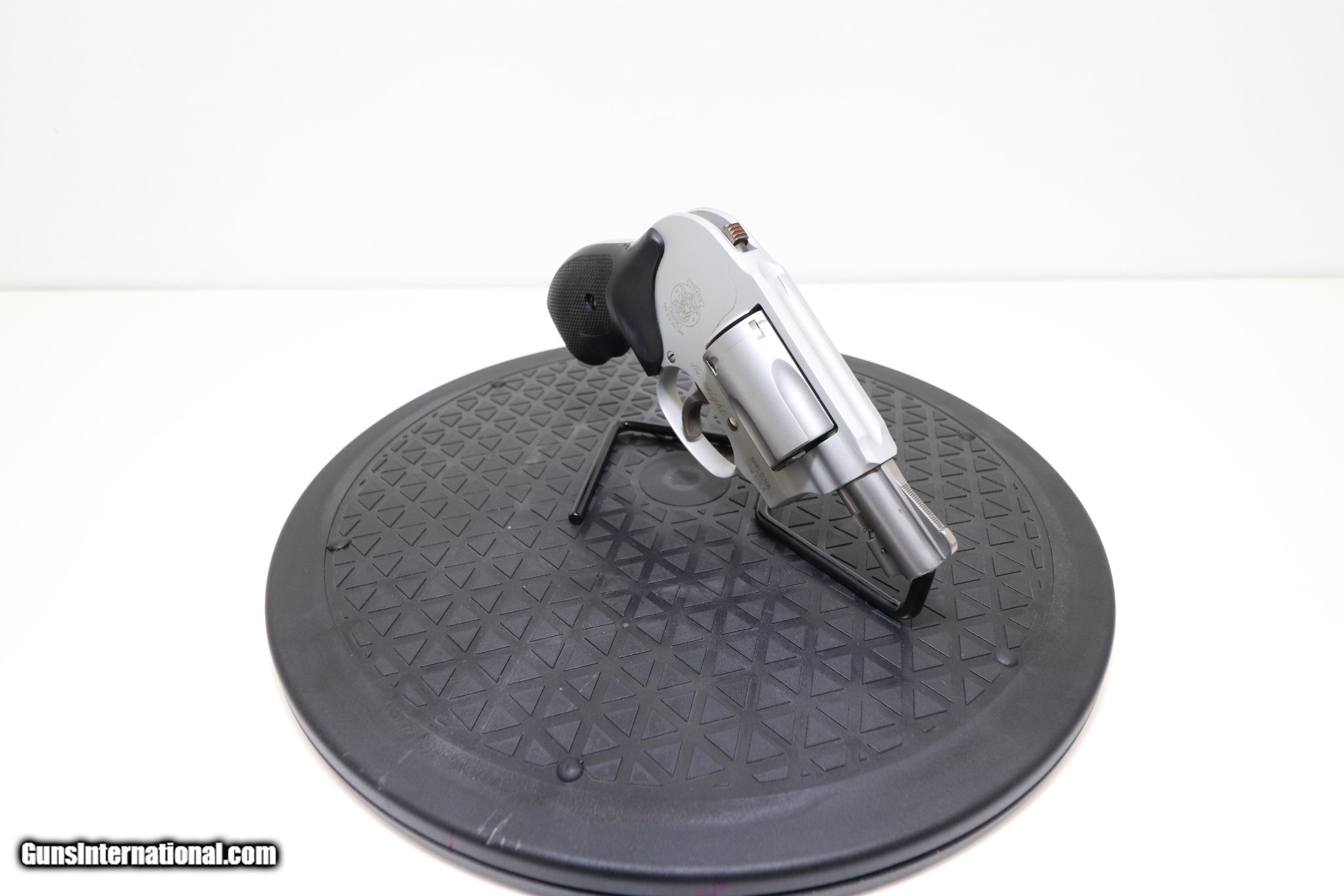 Description: Guns Listing ID: 471200 This used Smith & Wesson 638 Airweight Revolver is in excellent condition and comes with the original case. Smith & Wesson J-Frame revolver is designed to fire a full power round and is as simple and easy to use as it is reliable. The Model 638 is an innovation of the Model 38 Bodyguard Airweight which integrates time-tested features of the original with modern advancements. This model has an aluminum alloy frame with a matte sliver finish, stainless steel barrel and cylinder, integral front and fixed rear sights, and an external hammer. It also has black grip. SOLD Manufacturer: SMITH & WESSON Model: 638 AIRWEIGHT Condition: Used - Non-Certified Barrels: 1.88 Gauge Info: .38 SPL +P Finish: silver |