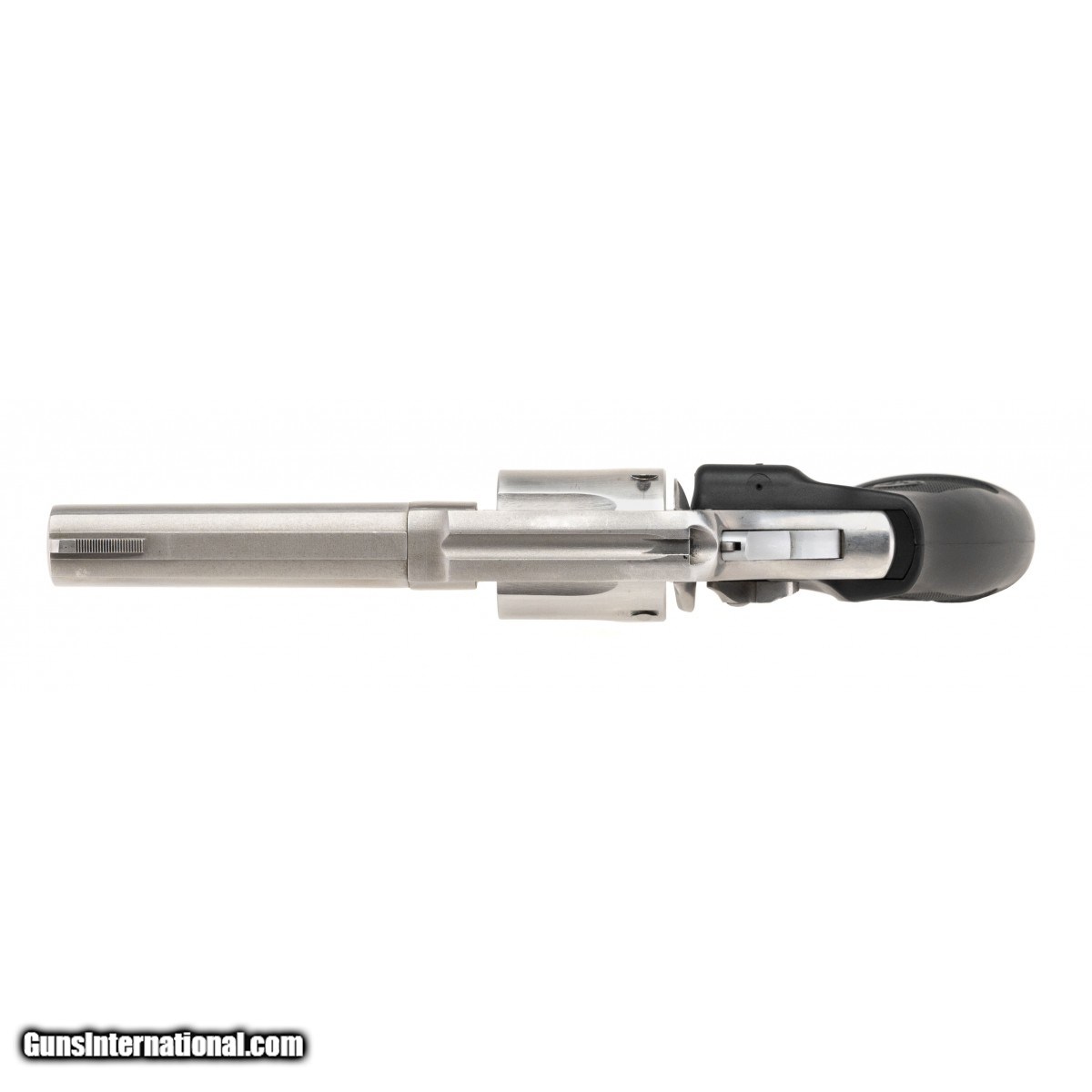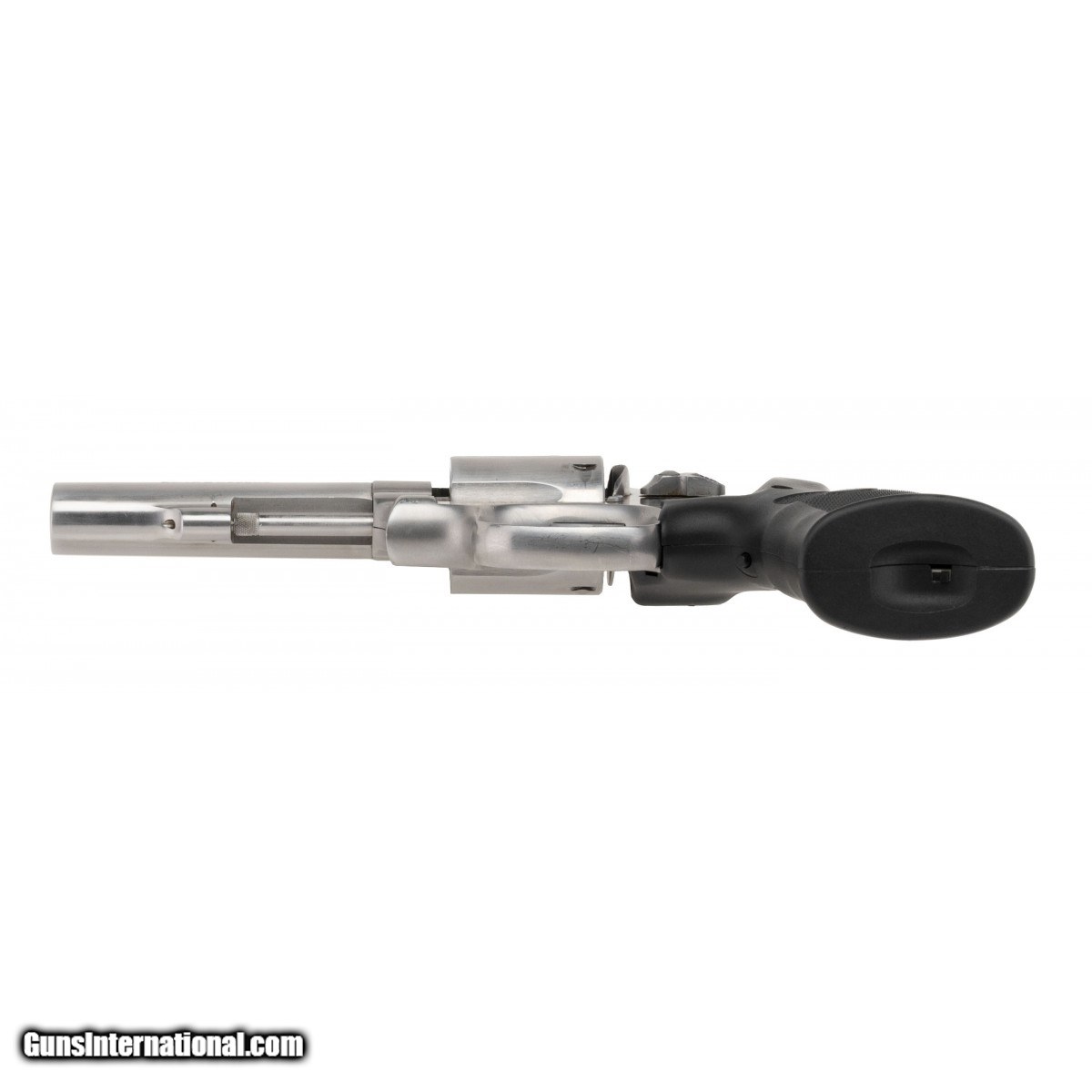 Double action only 4"" stainless steel service revolver with chopped hammer. 1990's vintage without internal lock. Has Crimson Trace laser grips. Very good condition overall.