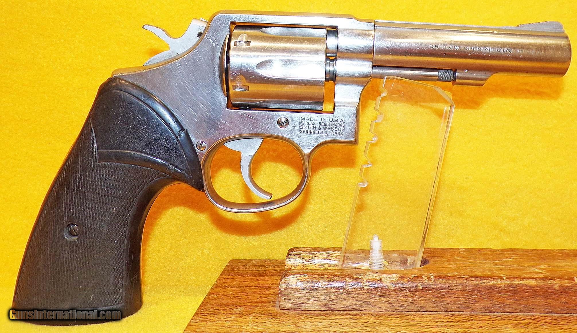Description: S&W 64-5 IN .38 SPECIAL CAL., WITH 4" BARREL. COLOR STAINLESS STEEL. CONDITION 93%+. SERIAL NUMBER BPA7696. S&W MODEL 64-5 IN .38 SPECIAL CALIBER, SMOOTH RUBBER GRIPS VERY GOOD, BORE EXECELENT, 93%+ OVERALL CONDITION OUR STOCK # D1632 SOLD |