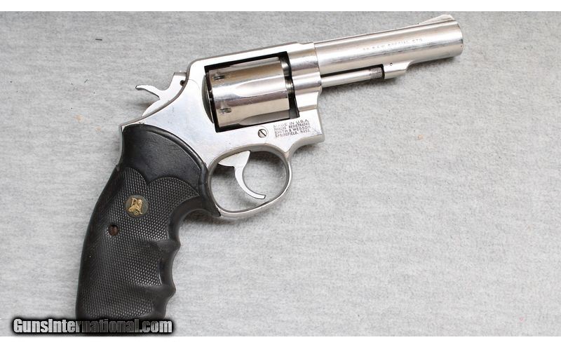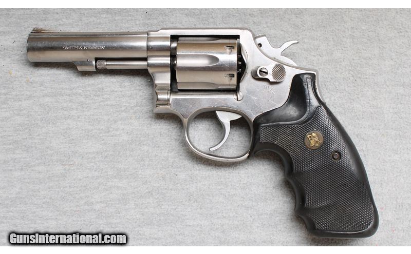 Description: Good condition, finish wear, nicks and scratches. 6 Shot .38 caliber revolver with 4" heavy barrel, fixed sights, stainless finish and Pachmayr hard rubber grips, manufactured in 1989. A good choice for home defense or target practice. .38 Special SOLD Chambers: Revolver Metal Condition: Good Bore Condition: Bright Barrels: 4 Triggers: Double and single action Butt Pad: Pachmayr grips Sights: Fixed sight channel Item Location: La Vista, NE |