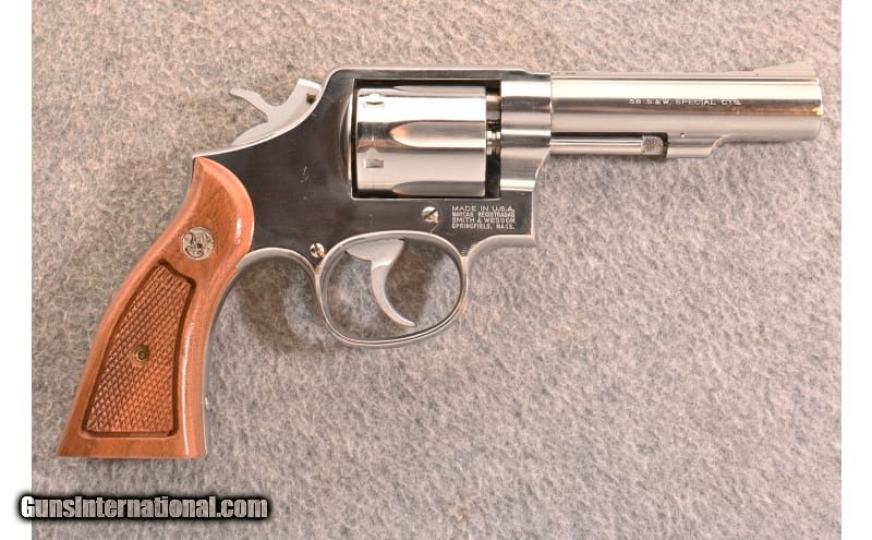 Description: A Smith & Wesson 64-5 in .38 S&W Special with a 4 inch barrel. .38 S&W Special SOLD Metal Condition: "Excellent with wear, small swirl marks and scratches in stainless Wood Condition: Excellent with wear Bore Condition: Bright and Shiny Barrels: 4 inches Triggers: Single/Double action Weight: 2 lbs Sights: Fixed iron sights Item Location: Gonzales, LA |
