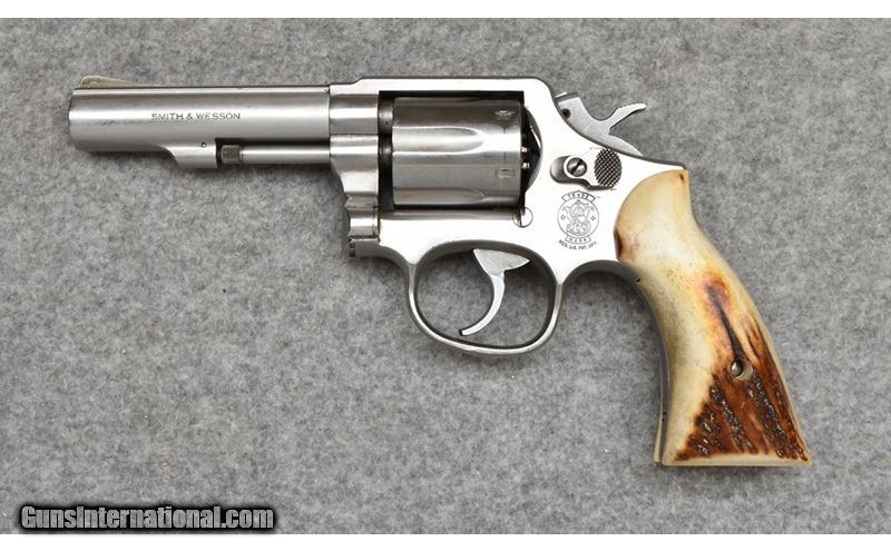 Description: This Smith & Wesson 64-5 is in great condition throughout showing use marks on all metal surfaces. Light drag ring on the cylinder. Bore is excellent condition. No box. .38 Special SOLD Metal Condition: Very Good Bore Condition: Excellent Barrels: 4 Triggers: Original Stock Dimensions: Antler Grips Weight: 34 oz. Sights: Serrated Ramp Front Sight - Integral Notch Rear Sight Item Location: Wheeling |
