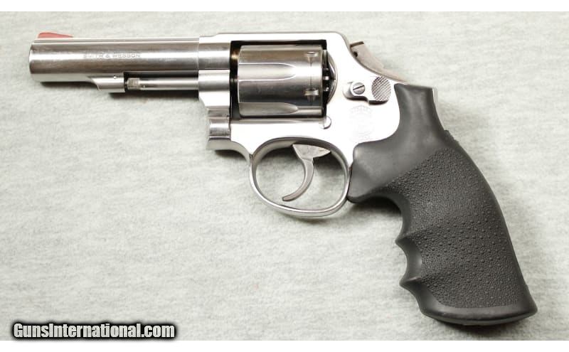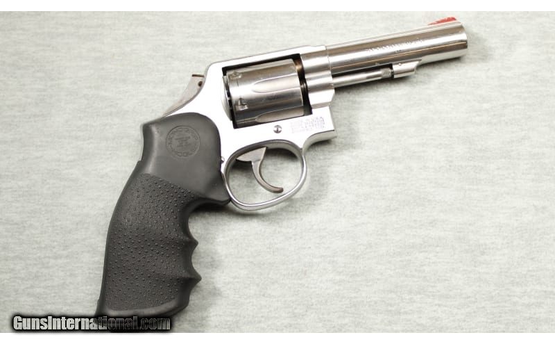 Description: Very good condiiton, some finish wear, small nicks and scratches. .38 Caliber revolver, 4" heavy barrel, stainless finish, double action trigger, 6 shot fluted cylinder, fixed sights, and Hogue textured hard rubber grips. A good choice for home defense. .38 Special SOLD Chambers: Revolver Metal Condition: Very good Barrels: 4 Triggers: Double action Butt Pad: Hogue grips Sights: Ramp front and fixed channel rear sights Item Location: La Vista, NE |