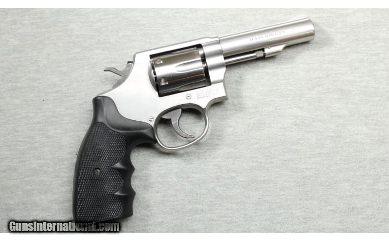 Description: Excellent condition, light wear & handling marks, comes with hard case. S&W .38 Special revolver, 4" heavy barrel, stainless finish, fixed sights, 6 shot fluted cylinder, double & single action trigger, checkered hammer & cylinder latch and black hard rubber grips. .38 Special SOLD Chambers: Revolver Metal Condition: Excellent Bore Condition: Bright Barrels: 4 Triggers: Double and single action Butt Pad: Hard rubber grips Sights: "Fixed rear, ramp front sights Item Location: La Vista, NE |