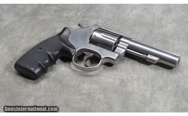 Description: Features Stainless Steel for corrosion resistance, round butt frame,and composition combat grips, this one will make a great carry piece for the boat or the field. .38 Special + P SOLD Chambers: 6-shot revolver Metal Condition: Very good. A number of very small scratches and the front face of the cylinder has firing residue Wood Condition: Very good. Some wear from handling Barrels: 4 Inch. Sights: Serrated ramp and top-strap groove Item Location: Rogers |