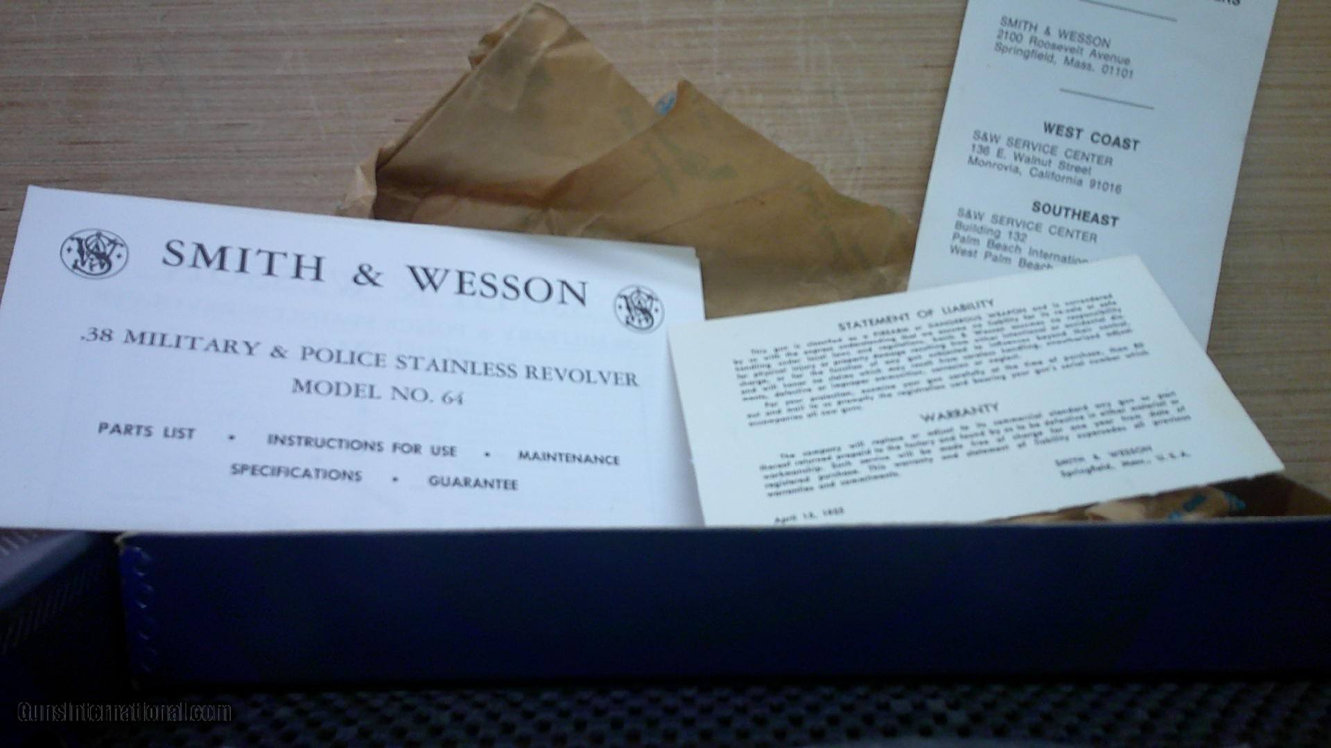 SMITH & WESSON MODEL 64 MILITARY & POLICE SS .38 SPL CTG