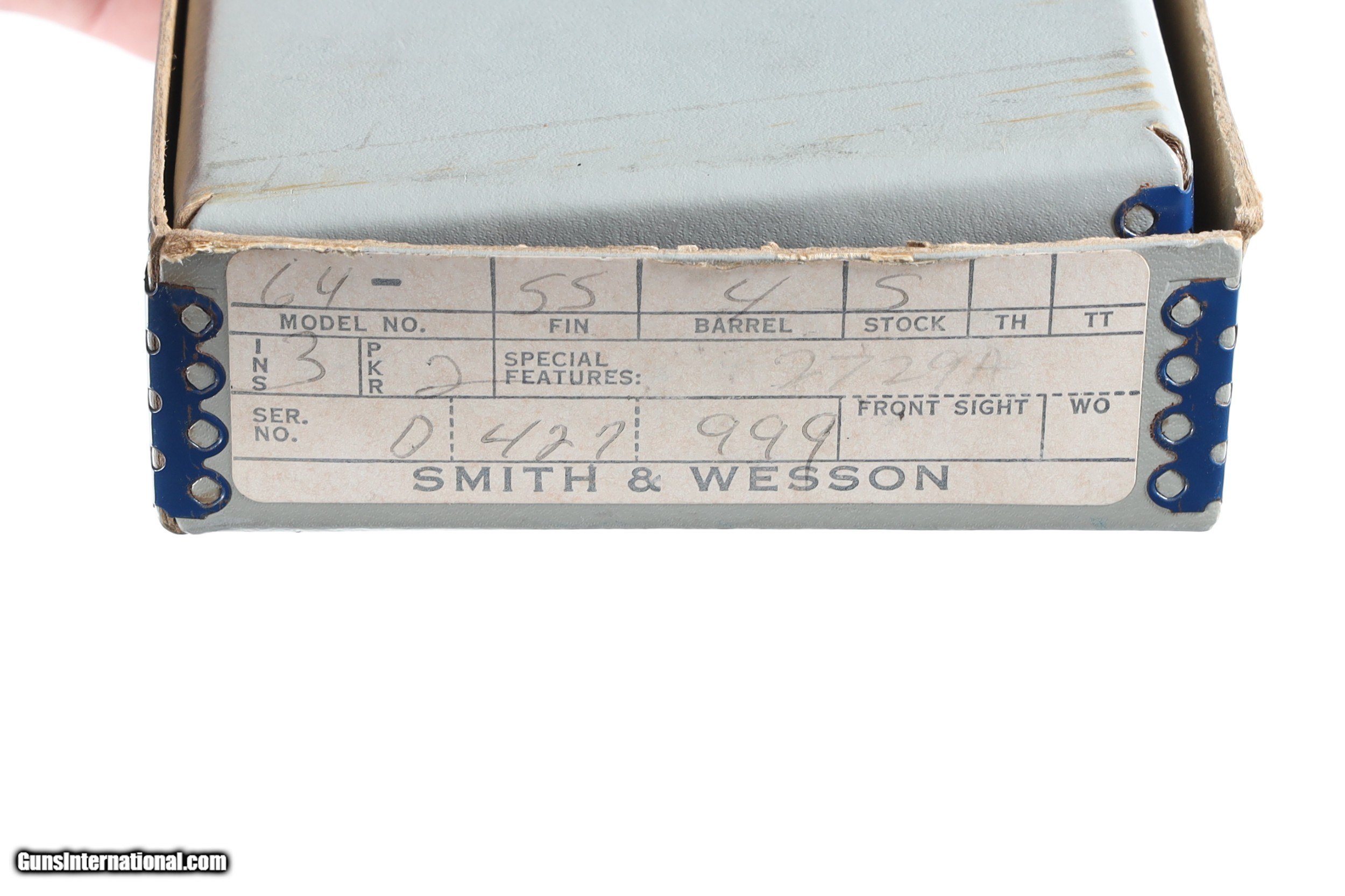 Description: Excellent plus overall condition with factory box numbered to gun. • Free Shipping, No Credit Card Fees. • Lay-a-way available for this firearm. • 1/3 Down, a 1/3 in 30 Days 1/3 in 60 Days. SOLD Manufacturer: Smith & Wesson Model: 64 Serial Number: D427999 Barrel Length: 4 |