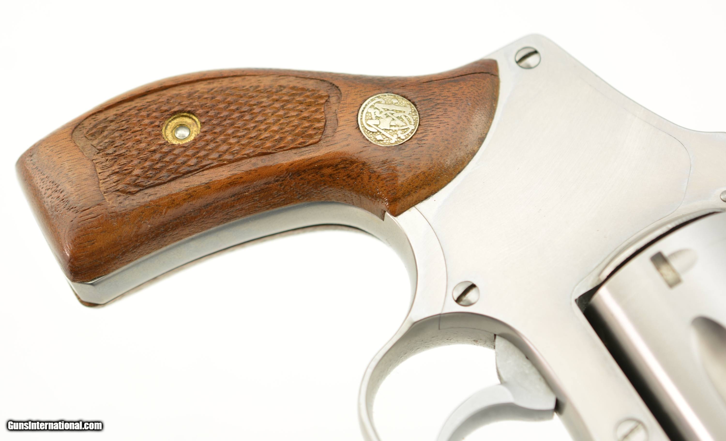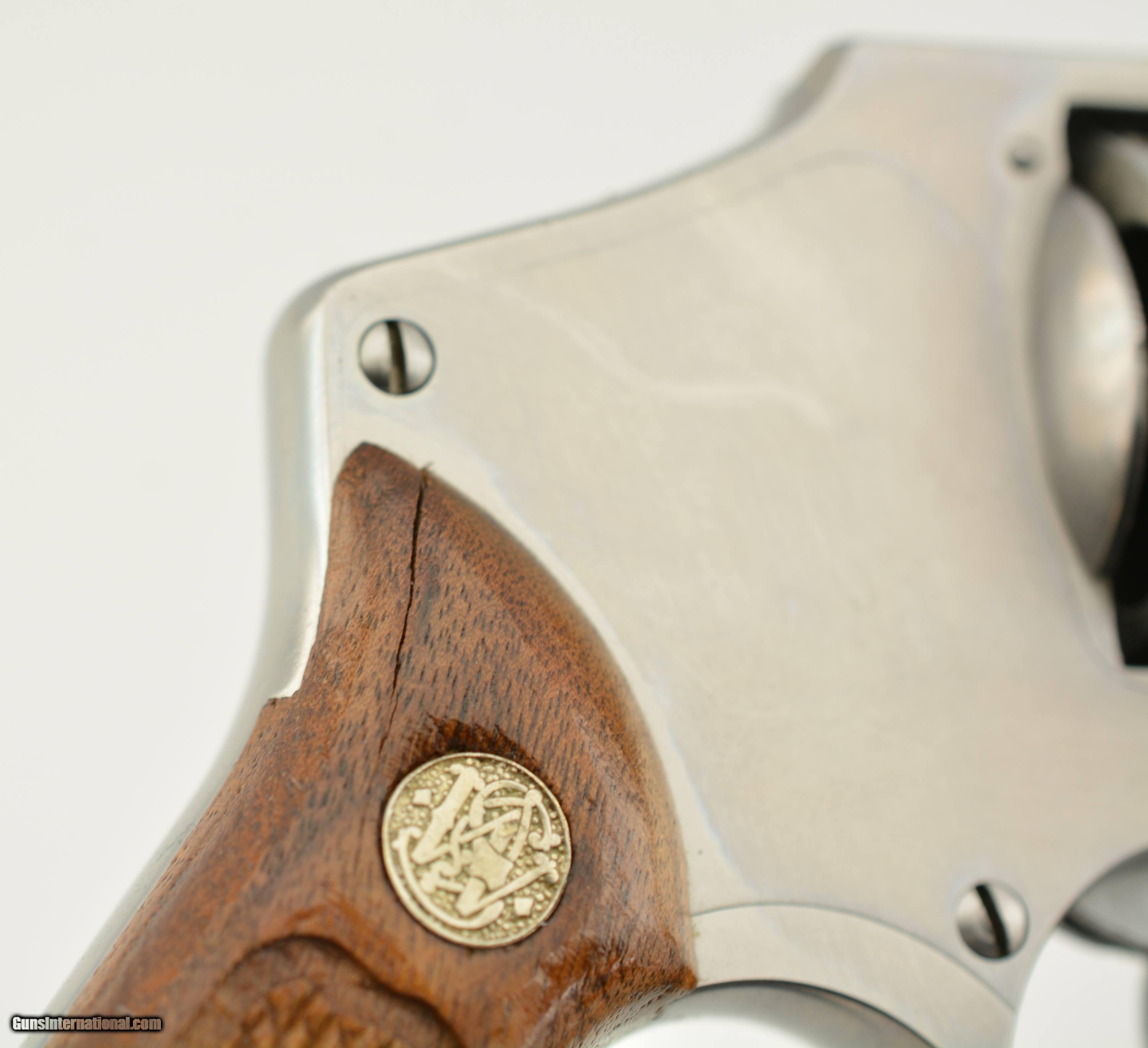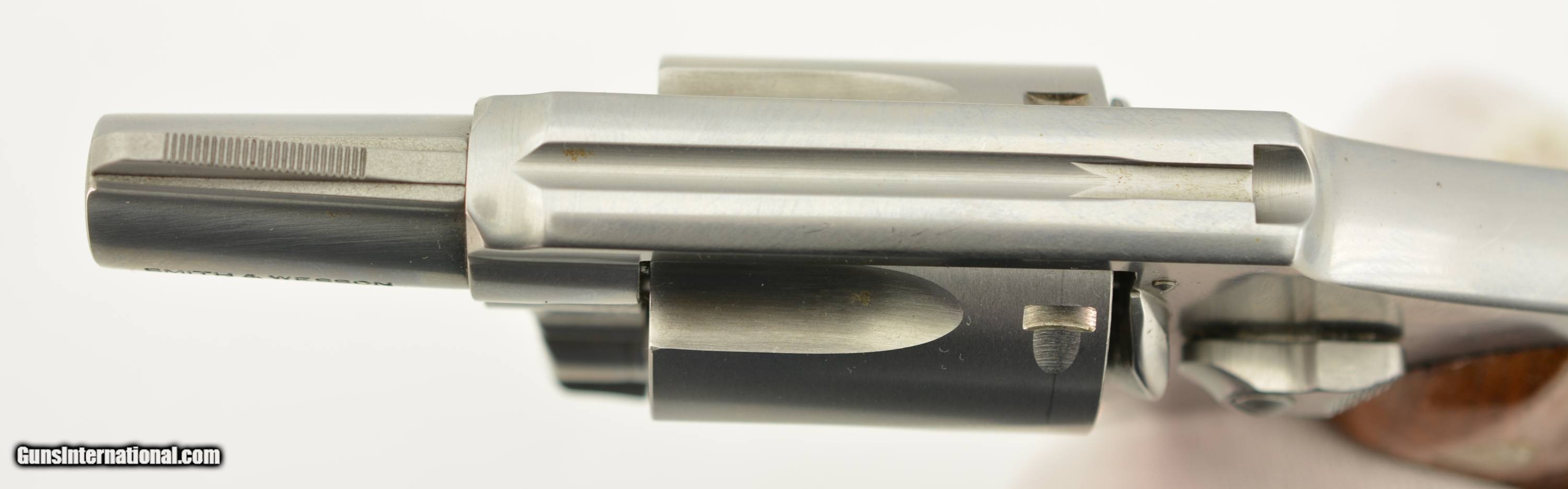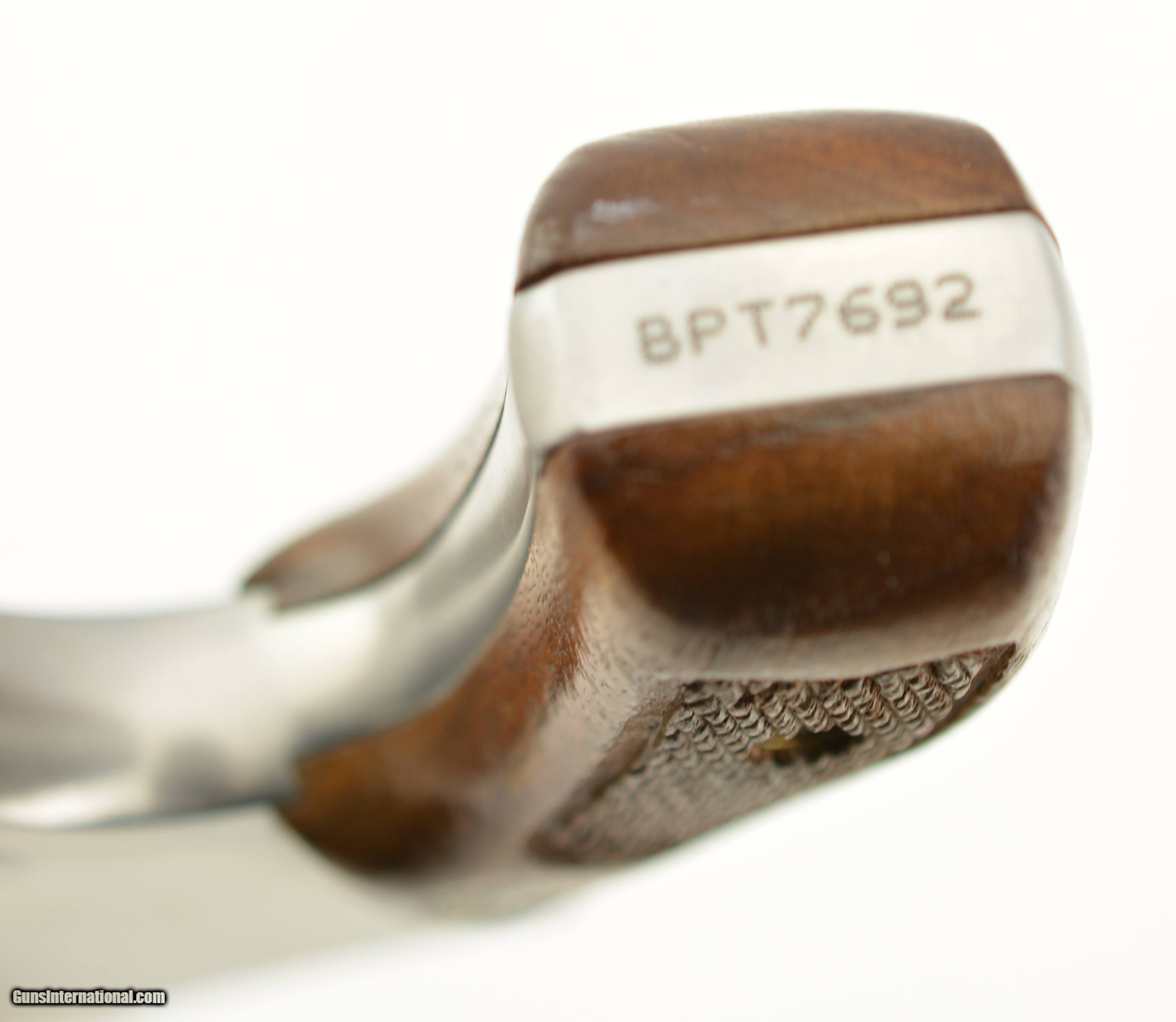 Description: Serial #BPT7692, .38 Special, 1 7/8" barrel with an excellent, bright bore. This is a "No Dash" revolver made ca. 1991, that has scattered small surface scratches and handling marks across the stainless steel, but is otherwise in fine-excellent condition. The checkered Goncalo Alves grips are very good shape with some flattening of the points, as well as a vertical crack running down from the top of the right panel. The lock-up is tight and the action functions flawlessly. This is a fine stainless S&W carry revolver overall. FFL SOLD Manufacturer: S&W Model: 640 Serial Number: BPT7692 Caliber Info: .38 Spl Gauge Info: .38 Spl |