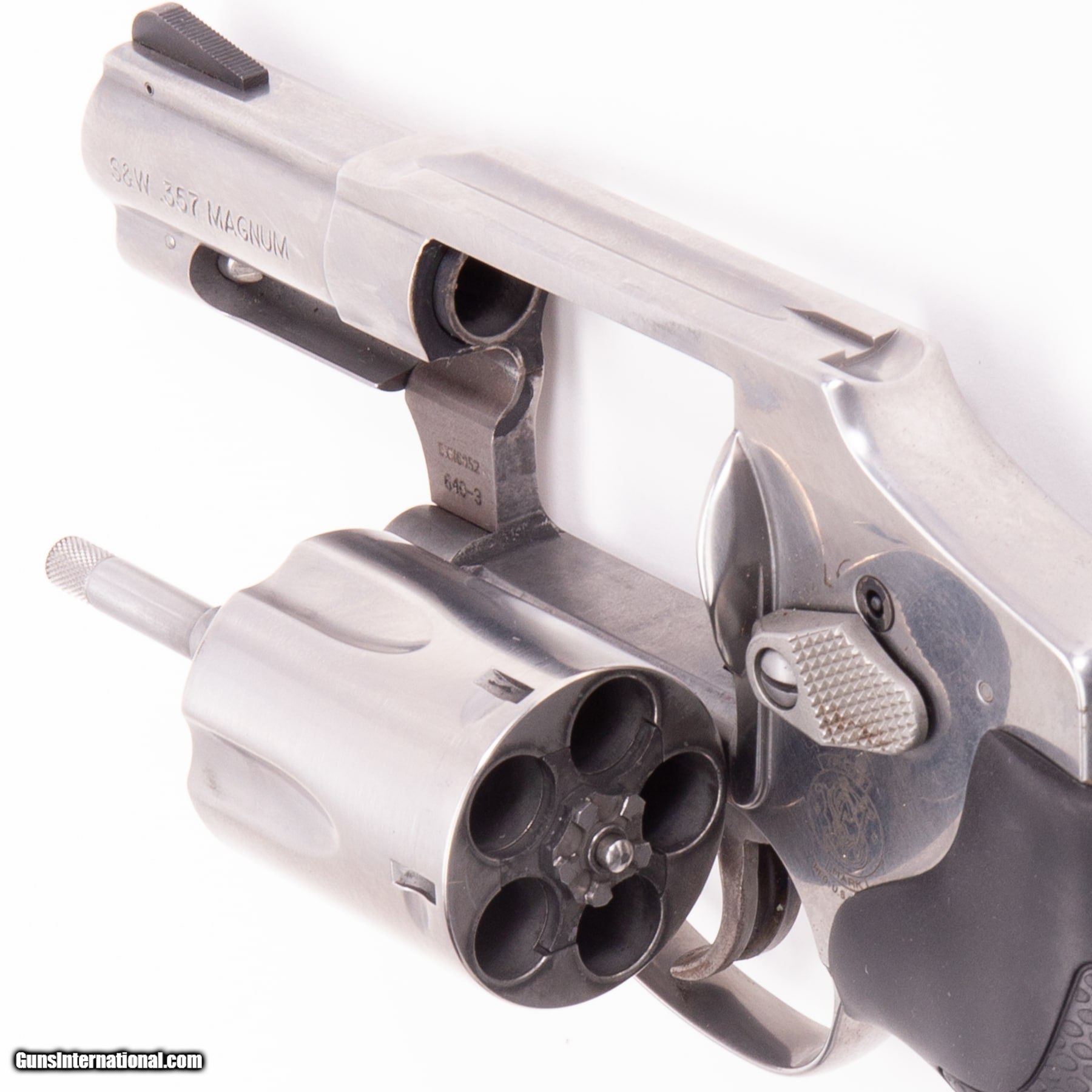 Description: Guns Listing ID: 319217 This Smith & Wesson Model 640-3 is a snub-nosed revolver that delivers five rounds of 357 Magnum. It makes a great daily carry gun as it offers lethal stopping power in a rugged and reliable design. This Model 640-3 is in very good condition, with only a light ring and minor burn marks on the cylinder. The original box, manual, and 5-round speed loader are included. SOLD Manufacturer: SMITH & WESSON Model: 640-3 Caliber Info: .357 MAG Condition: Used - Certified Barrels: 21 BARREL Finish: STAINLESS |