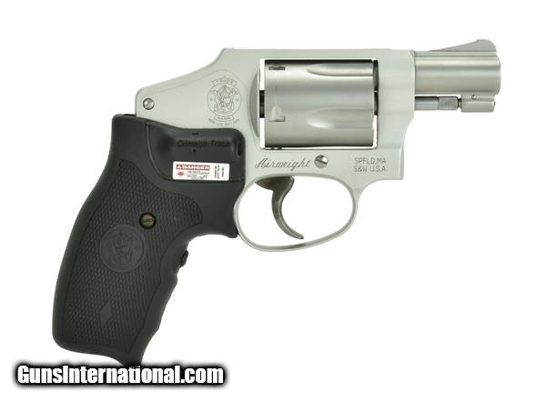 Description: Smith & Wesson 642-1 Airweight .38 Special caliber revolver. Stainless hammerless model with laser grips and box. Excellent condition.