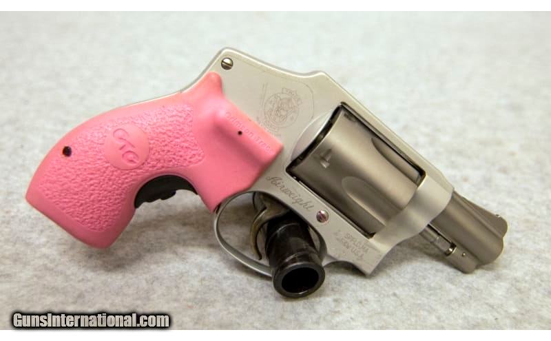 Description: Smith & Wesson 642-1 CT Airweight, chambered in .38 S&W Spl. Features include: J-frame, DAO, 2 in. stainless steel barrel, aluminum alloy frame, stainless steel cylinder, crimson trace laser pink grips, hammerless, satin stainless finish, fixed rear sight, 15 oz. .38 S&W Special SOLD Chambers: .38 S&W Spl Metal Condition: Excellent Bore Condition: Excellent Barrels: 2' Sights: Iron Item Location: Fort Mill, SC |