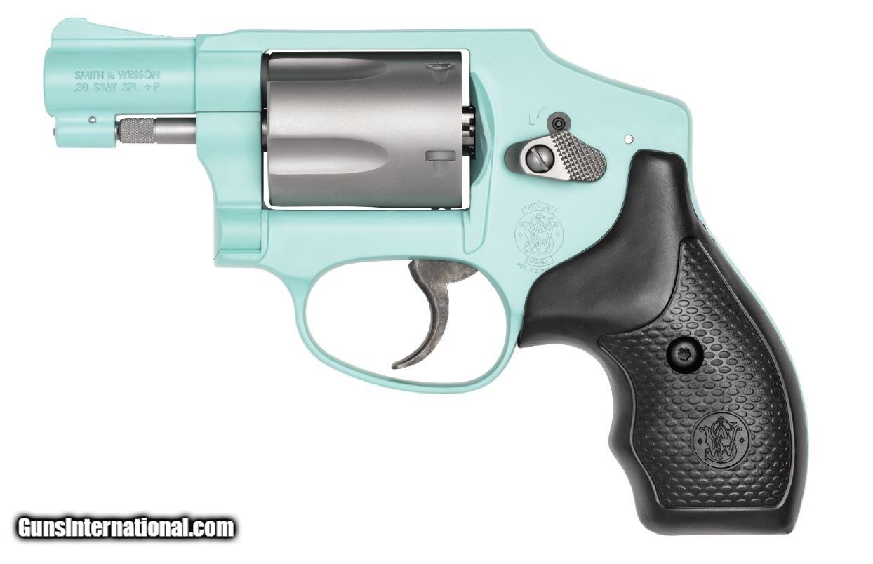Description: Guns Listing ID: 1197250 Smith & Wesson 13631U Model 642 Airweight 38 S&W Spl +P 5rd 1.88\" Stainless Steel Barrel & Cylinder Robins Egg Blue Aluminum Frame with Black Polymer Grip, Internal Lock & Enclosed Hammer SOLD Manufacturer: SMITH & WESSON Model: 642-2 Caliber Info: .38 SPL Condition: new Barrels: 1.875 BARREL Finish: ROBIN‚‚S EGG BLU |