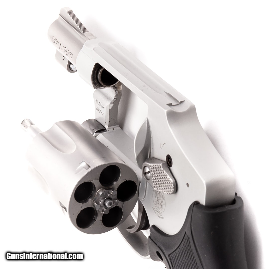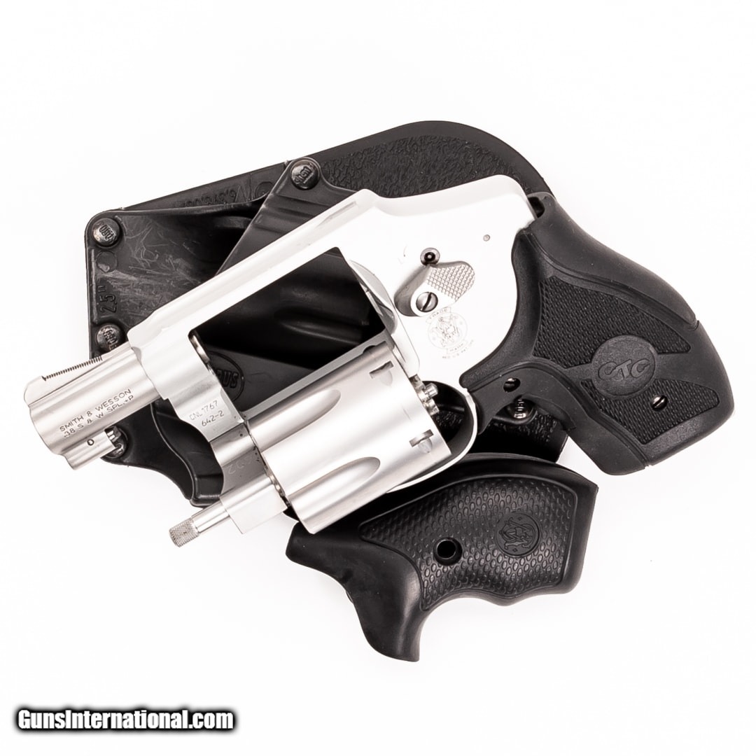 Description: Guns Listing ID: 332481 Rugged, dependable, and designed for concealed carry, the Smith & Wesson Model 642-2 Airweight is a snub-nosed revolver ideal for self-defense. It features a compact, snag-free design for easy drawing and is chambered in the classic 38 Special cartridge. This revolver is equipped with Crimson Trace grips, with the original grips included, and is in very good condition, with a cylinder ring and marks on the trigger guard and front of the frame. A right-handed paddle-back Fobus holster is also included. SOLD Manufacturer: SMITH & WESSON Model: 642-2 AIRWEIGHT Caliber Info: .38 SPECIAL Condition: Used - Certified Barrels: 2 BARREL Finish: STANILESS |