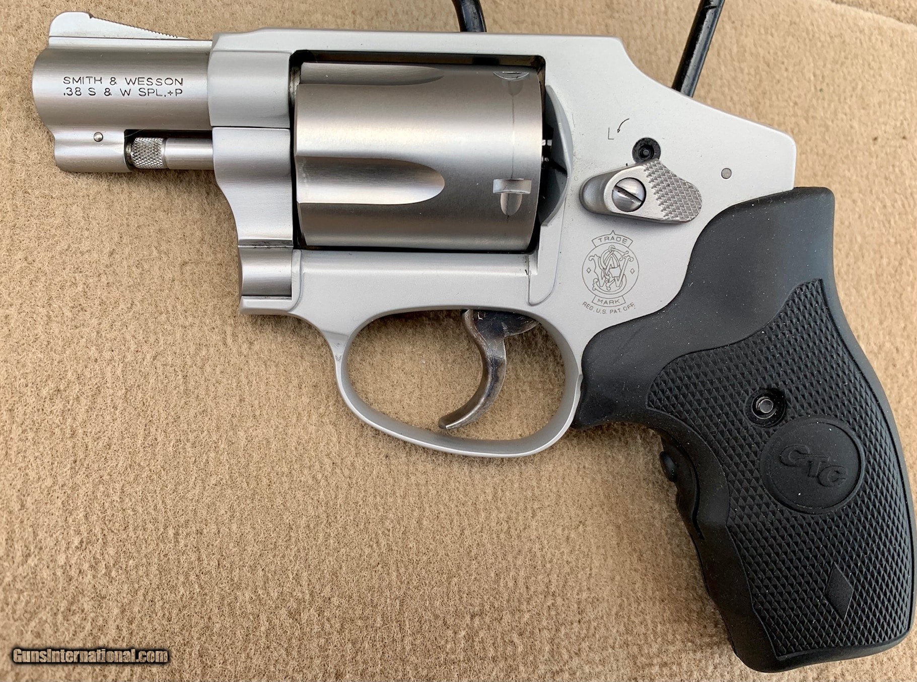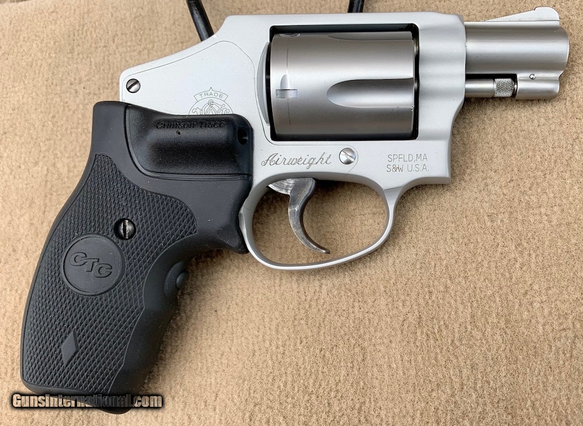 Description: Guns Listing ID: 514616 Like New condition. S&W Item # 163811. 1-7/8\" barrel on lightweight alloy frame. Crimson Trace laser grips. 5-shot hammerless DAO. SOLD Manufacturer: SMITH & WESSON Model: 642 AIRWEIGHT CT LASERGRIPS Caliber Info: .38 SPECIAL +P Condition: Used - Non-Certified Barrels: 2" barrel Finish: STAINLESS |