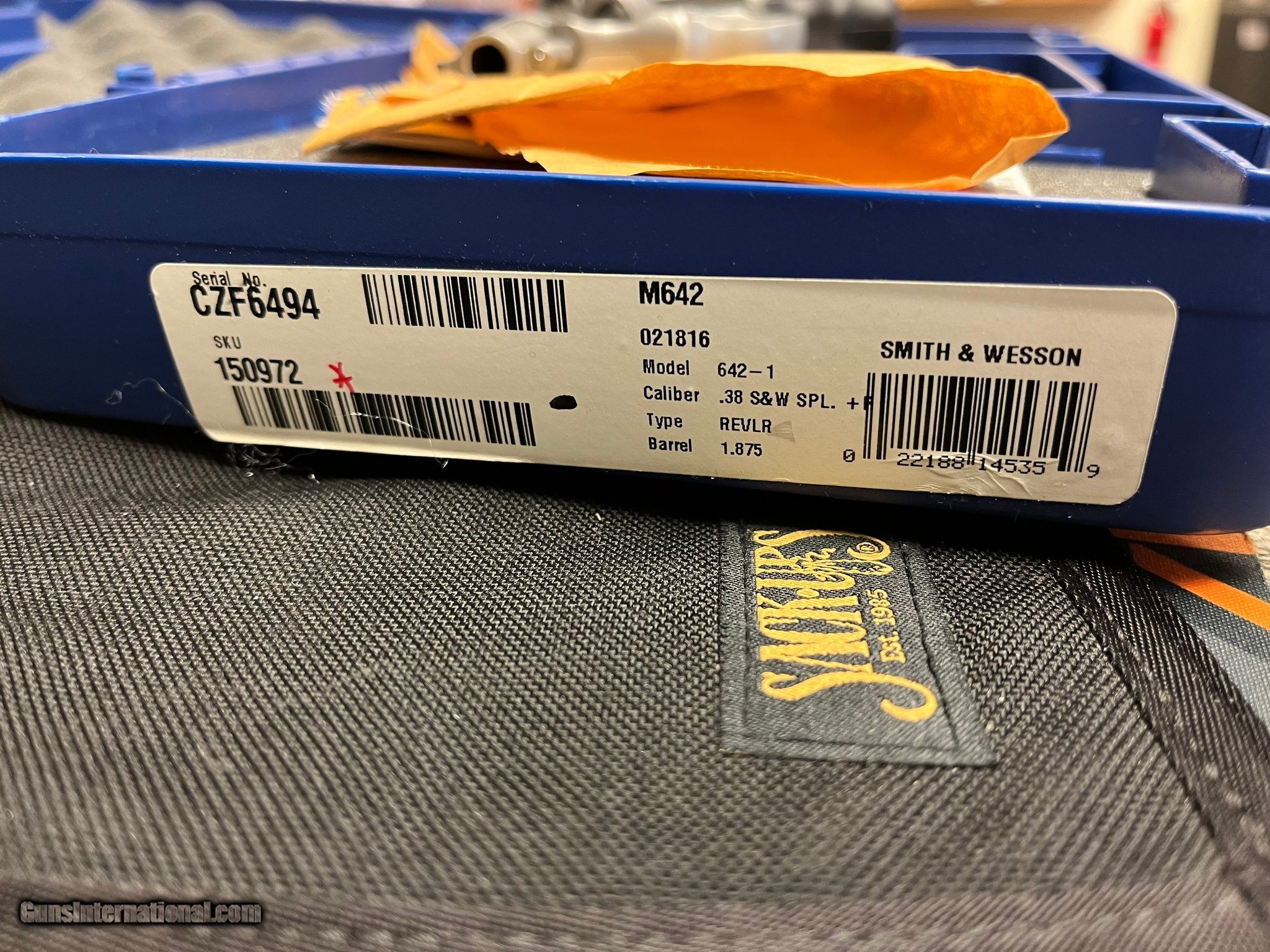 Description: Guns Listing ID: 478290 Smith & Wesson 642 no lock j frame revolver. 38 spl. Silver finish. 5 shot. Excellent condition SOLD Manufacturer: SMITH & WESSON Model: 642 No Lock Condition: Used - Non-Certified Barrels: 2 Gauge Info: .38 SPL Finish: silver |